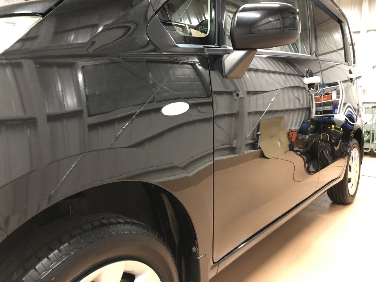 ボディーカラーは人気のブラックメタリックで、リアバンパーの非常に軽微な凹みを除き気になる傷や凹みは無く、塗装状態も極めて良好で、艶々のピカピカです。