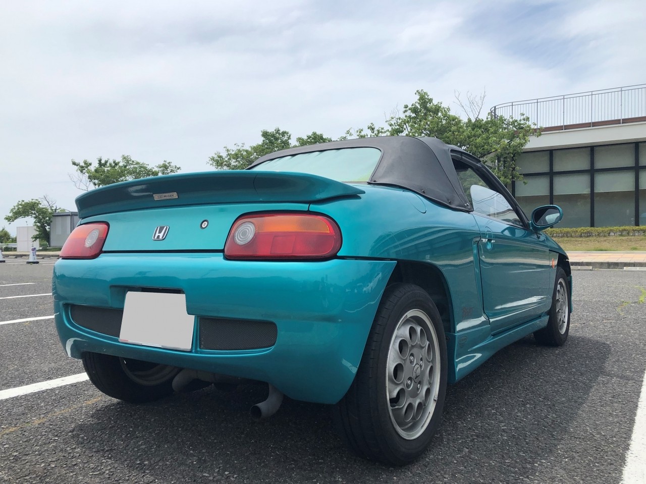このBEATはアズディックグリーンパール色を纏った限定800台のVer.Fであることに加え、無限フルエアロや純正MOMOステアリングが装着されている希少な車両です。