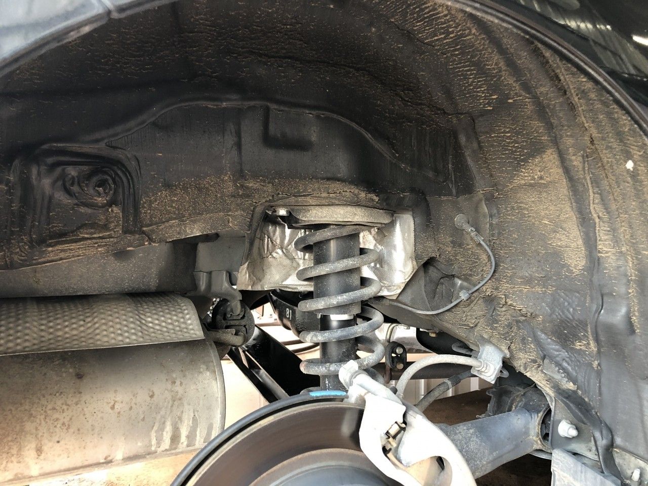 また、同時にサスペンションのオイル漏れが無いかや、ドライブシャフトブーツ、タイロッドエンドブーツ、ロアボールジョイントブーツ、各部ブッシュの状態、ブレーキパッド残量を確認していきます。