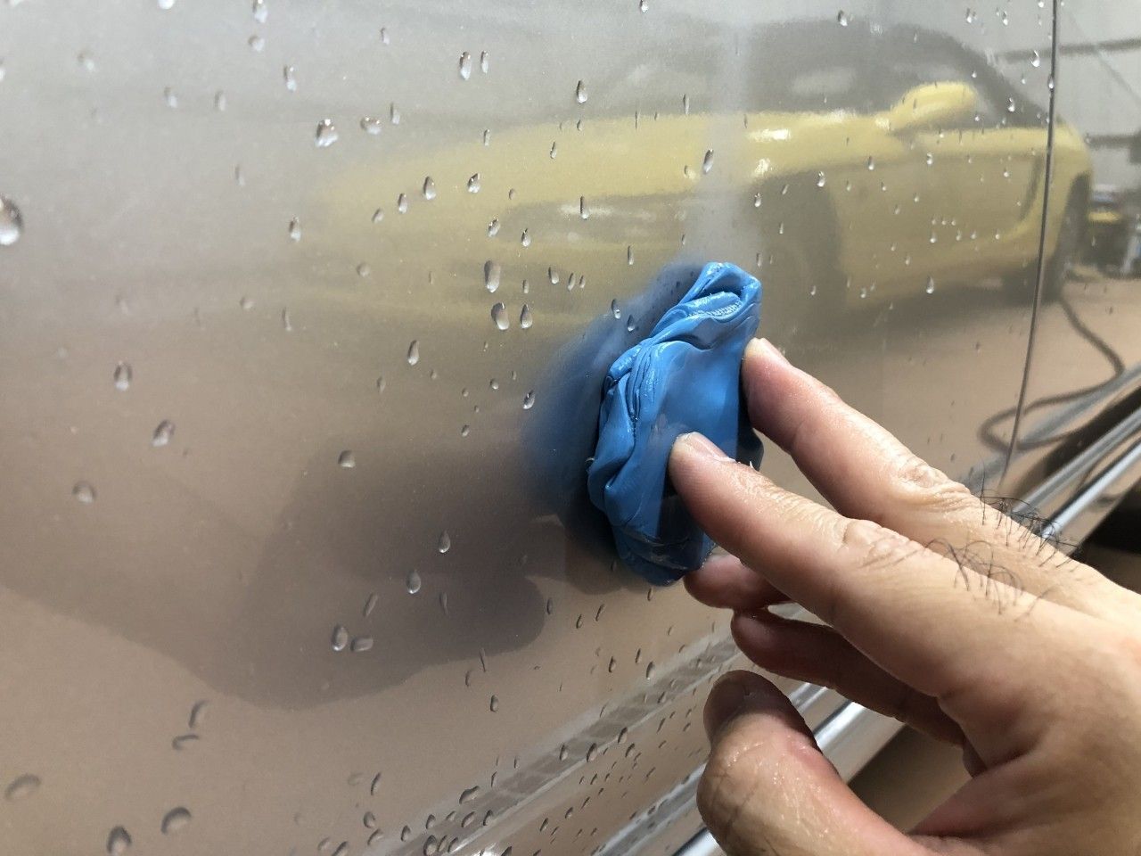 以上で鉄粉除去作業は完了ですので、続いては、ポリッシング作業に入る前のマスキング作業を行います。