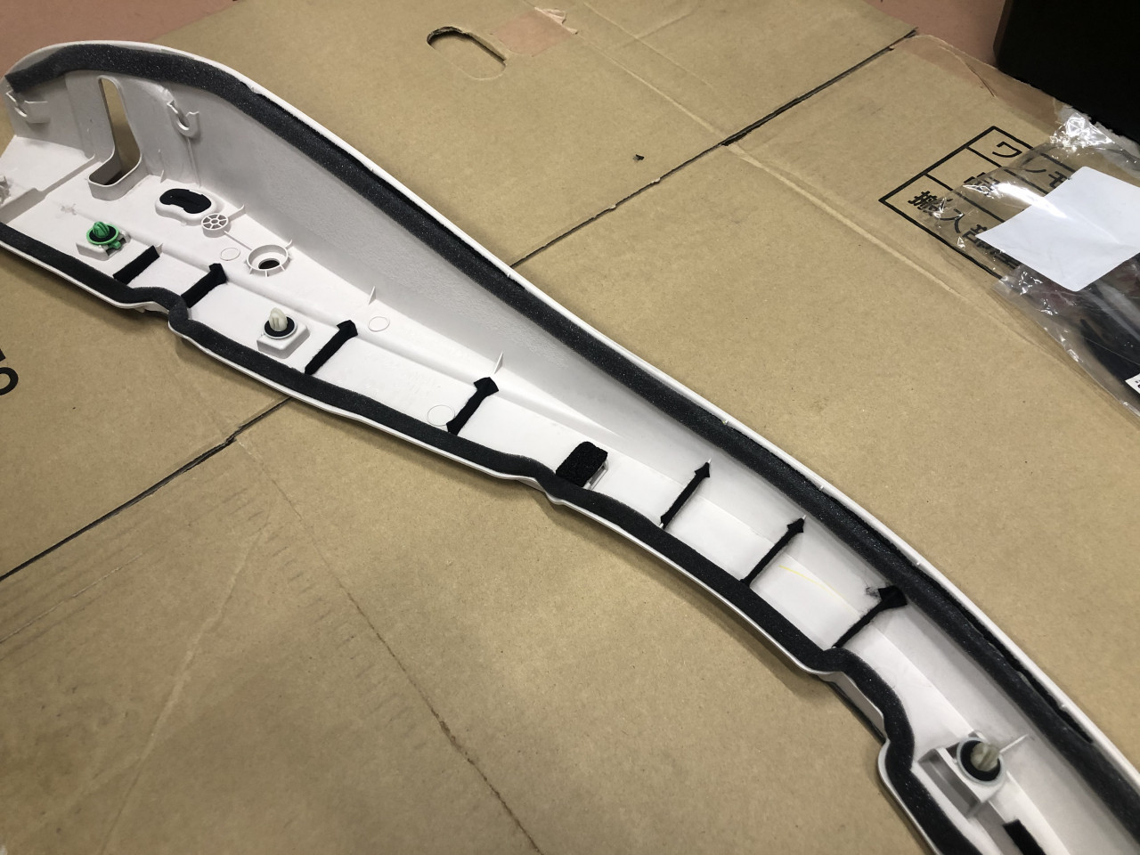 その事象から、何かが遊んでいるのでは無く、車体の変形等の動きが加わった際に音が出ていることが予想されますので、まずはウェザーストリップが怪しいと考え、ウェザーストリップの脱脂をしたり、給油をしたりしましたが、一向に改善せず。