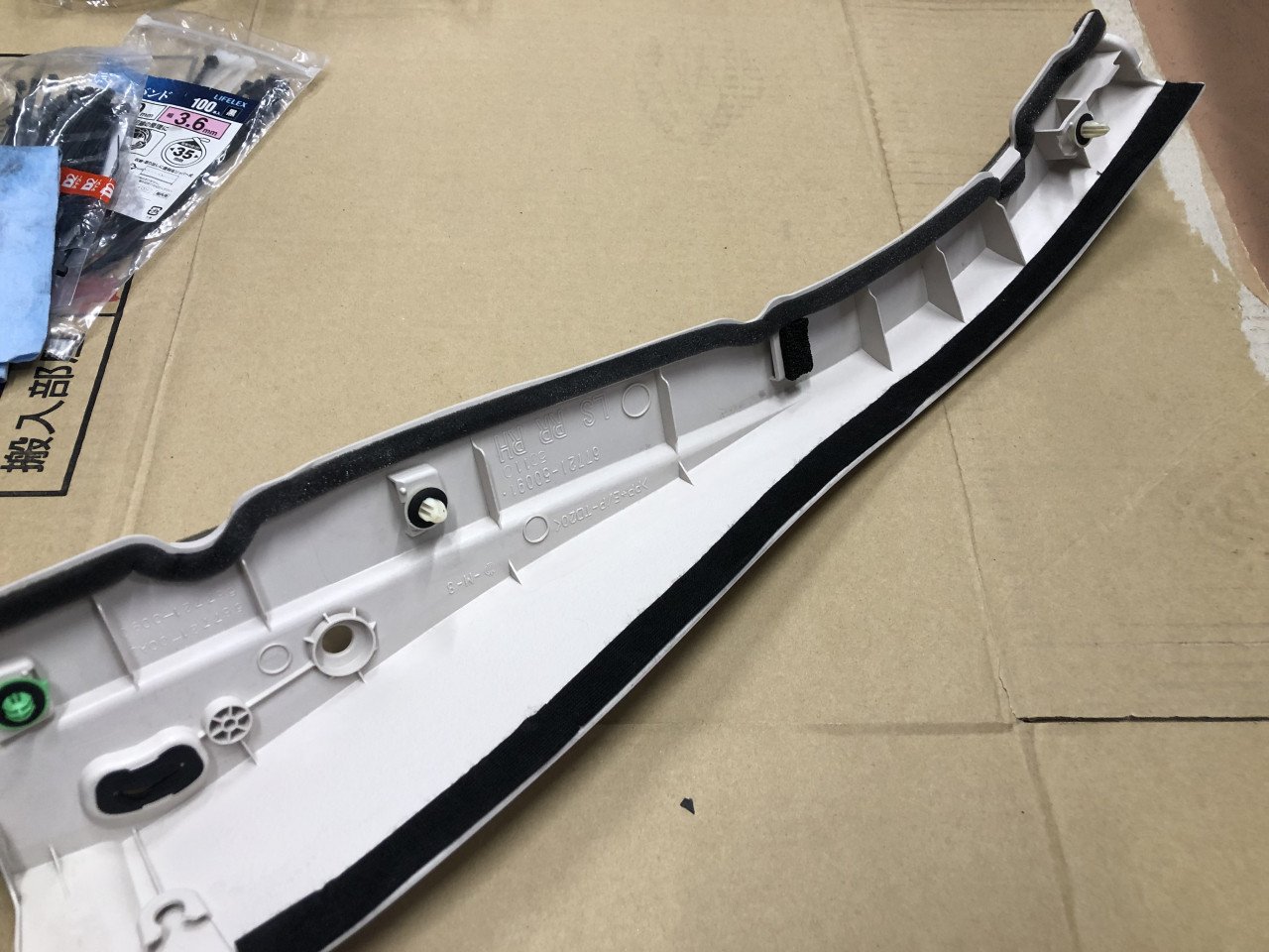 そこで、ウェザーストリップを外して確認することにしましたが、この車両はウェザーストリップを外すには座席横のガーニッシュも外さないといけないので、サイドシルガーニッシュから順に外していきます。