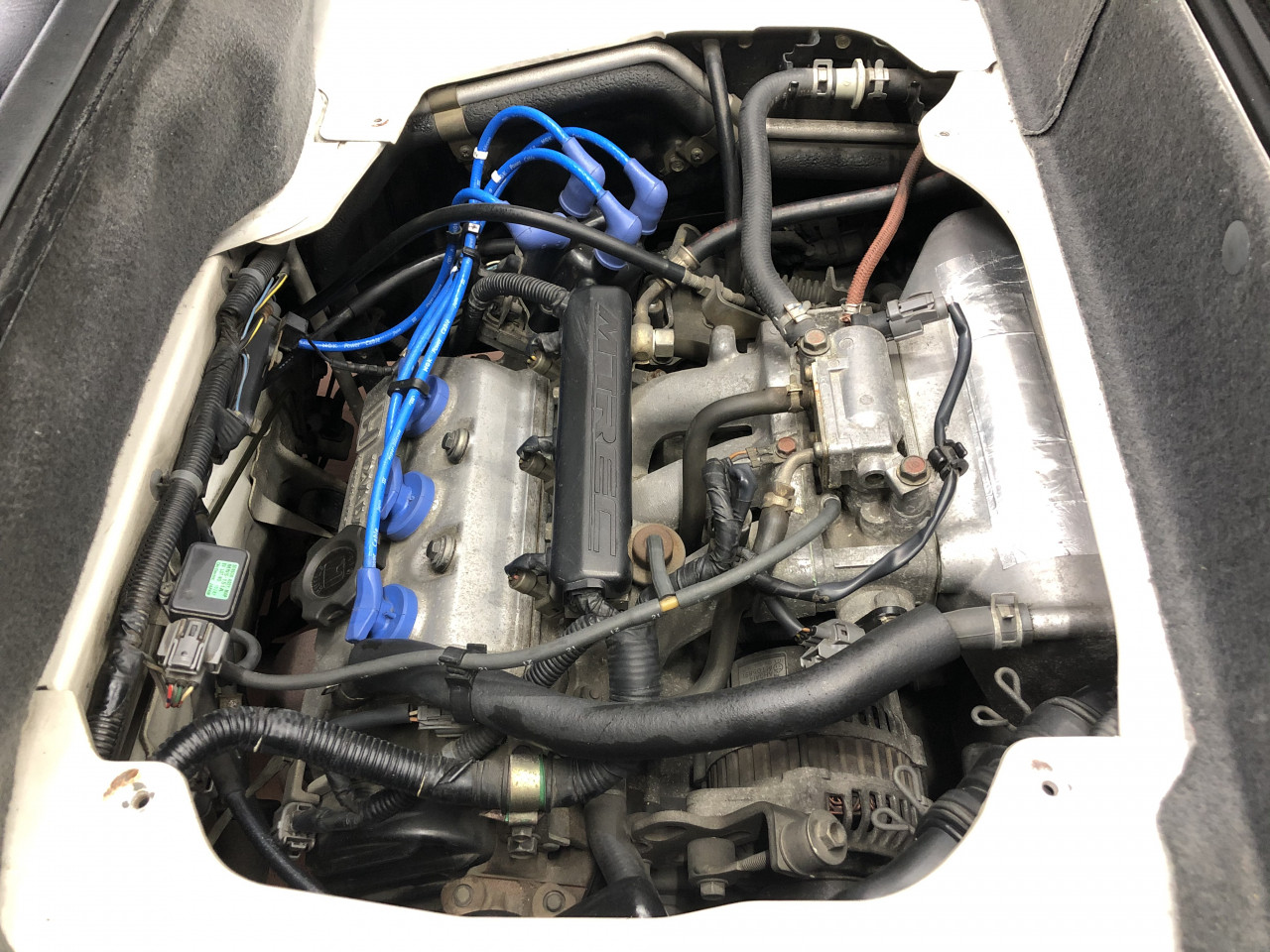 前回は【ボディー状態確認編③】として、リア廻りの状態確認及び清掃の様子をご紹介致しましたが、今回は第5回目【エンジンルーム清掃及び状態確認編】として、リアにあるエンジンルームのチェック及び清掃、プラグの状態確認、点火時期確認、アクセルワイヤー調整等を行った際の様子をご紹介致します。