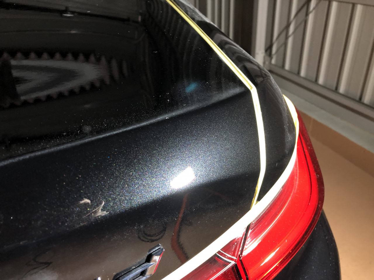 更に、トランク後端にまでバフ傷が及んでおりましたので、この部分も傷除去を致します。