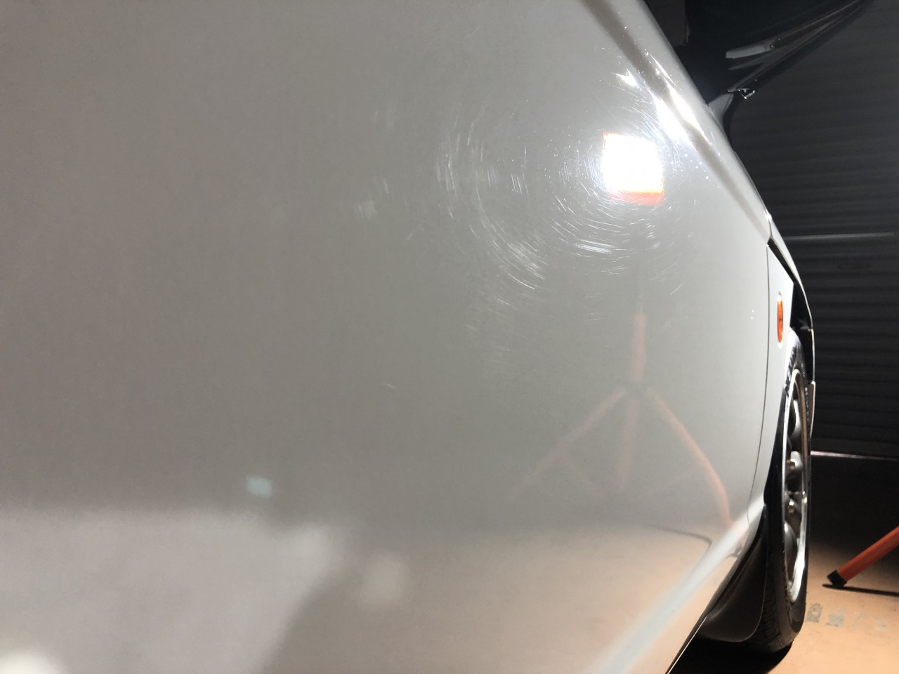 更に、屋内にて専用の照明を用いて傷の状態を詳細に確認しながら研磨作業(ポリッシング)が可能な為、細かい洗車傷まで綺麗に取り除くことが可能となります。