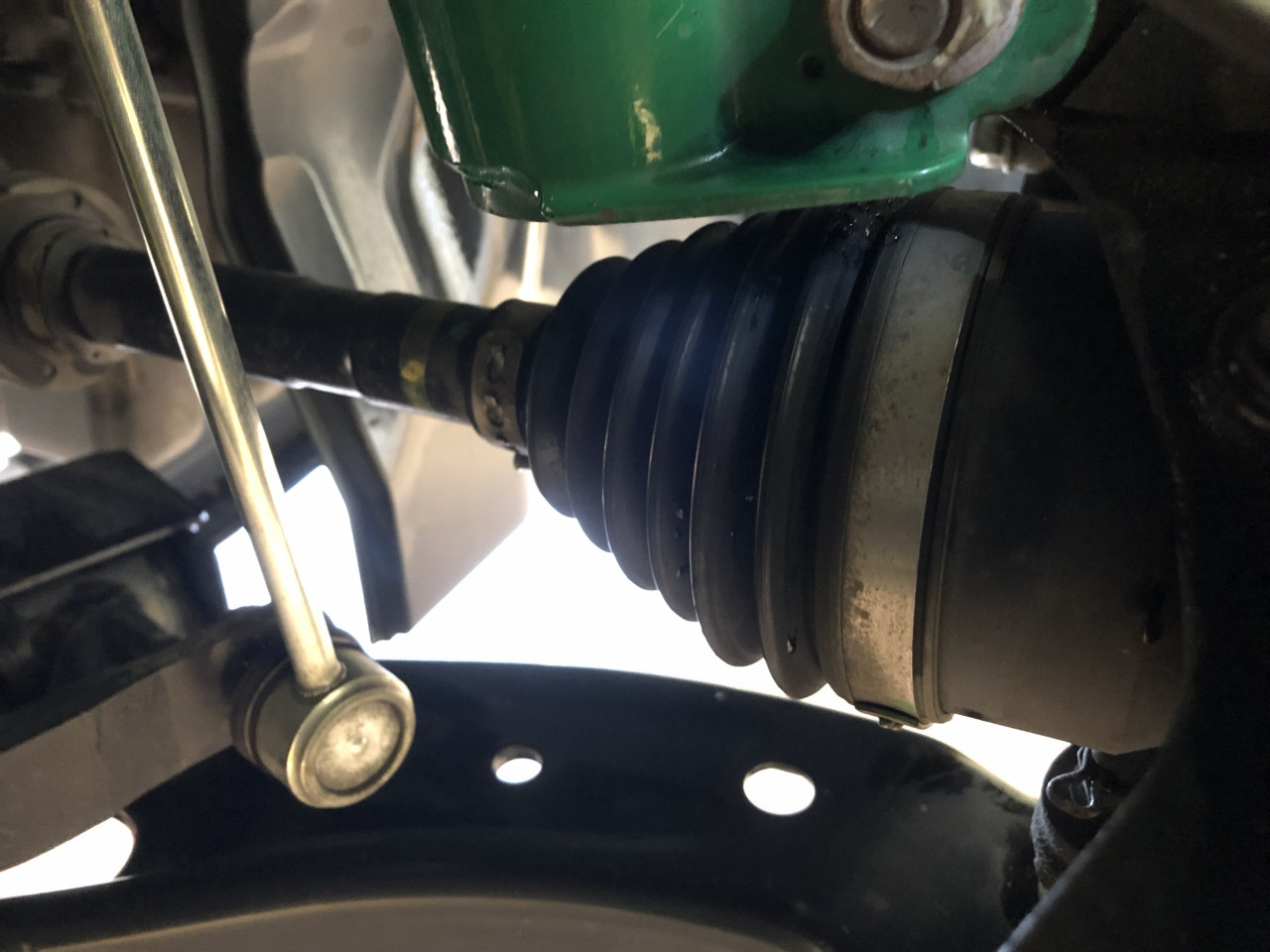 さて、清掃が終わりましたら、タイロッドエンドブーツ、ロアボールジョイントブーツ、ドライブシャフトブーツ、スタビライザージョイントブーツなどの各部ブーツ類の亀裂や破れが無いかなどの状態確認を行っていきます。