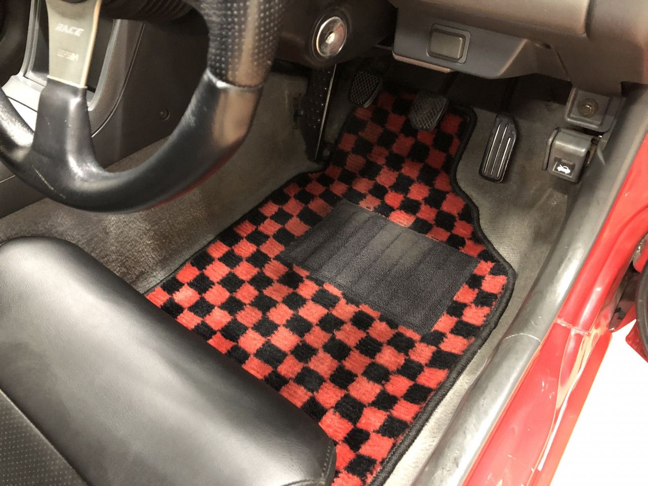 加えて、フロアマットやトランクマットも赤と黒のチェック柄で統一されております。