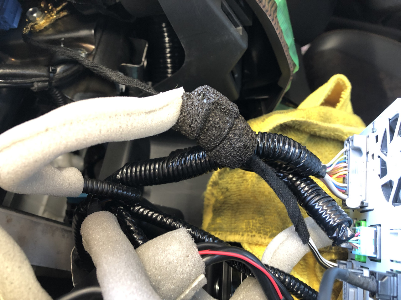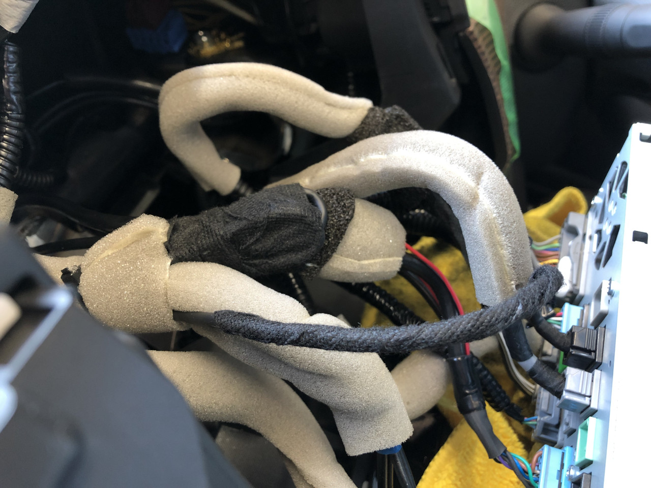 加えて、純正のナビ配線も裸のままでナビパネルに当たって音が出そうでしたので、同時に異音対策を行っておきました。