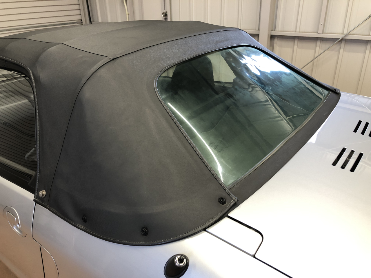 では、早速エンジンルームの確認に入りますが、まずはスクリーンのファスナーを外し、幌後部の固定ボルトを6本を外して幌とスクリーンをめくります。