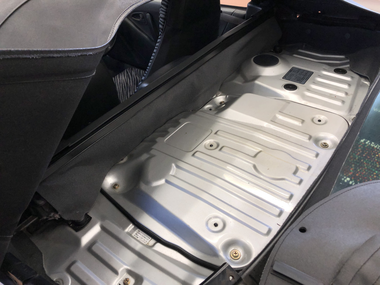 以上で、本BEATにおけるエンジンルーム内の確認及び清掃は終了ですので、メンテナンスリッドを元に戻して4本のノブにて固定し、清掃をしておきましたトランクマットを敷いていきます。