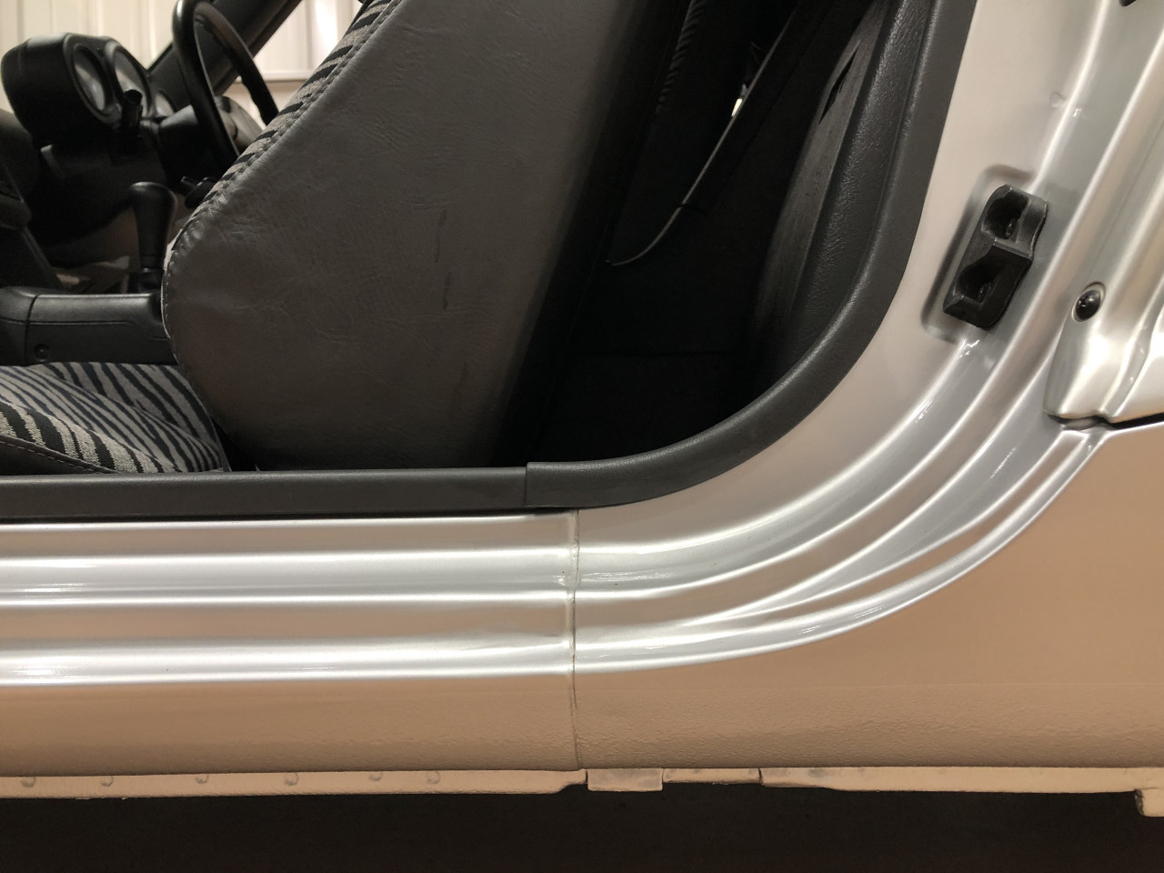 この部分は台座とボディーパネルの合わせ面が無塗装状態の為、この部分から錆が進行して、パネルの合わせ面まで錆で穴が空いている車両も稀に見かけますが、この車両は運転席側、助手席側共に全く問題無しです。