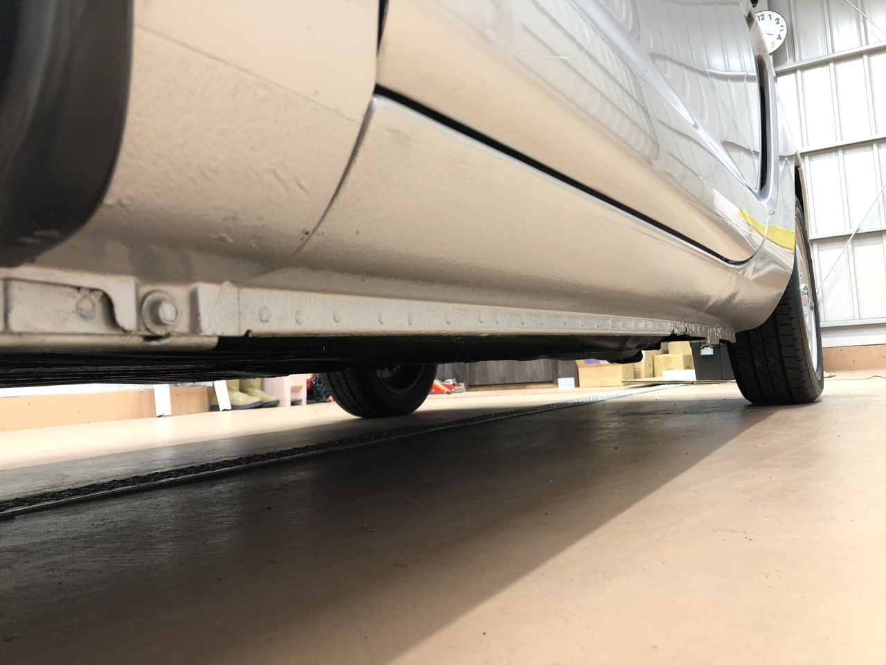 続いては、ジャッキアップポイント等を含めた、サイドシル下側を確認します。