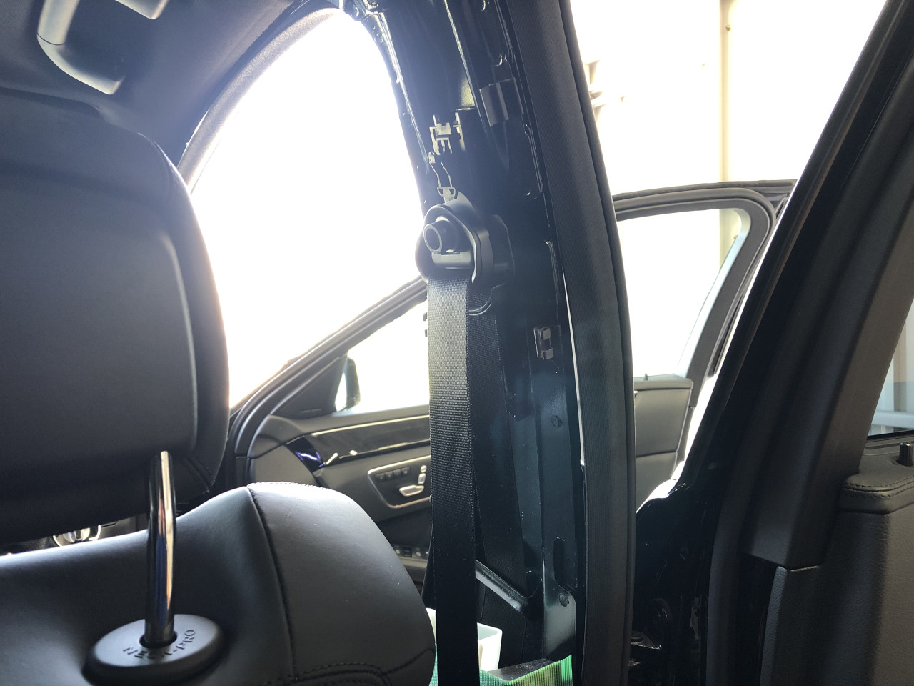 Bピラーガーニッシュは養生をした上で、手前に引っ張ると外れます。