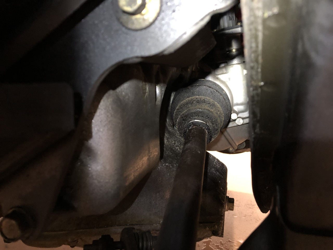 清掃に続いて、リアで確認できる唯一のゴム部品であるドライブシャフトブーツとインボードブーツの状態をご紹介致します。