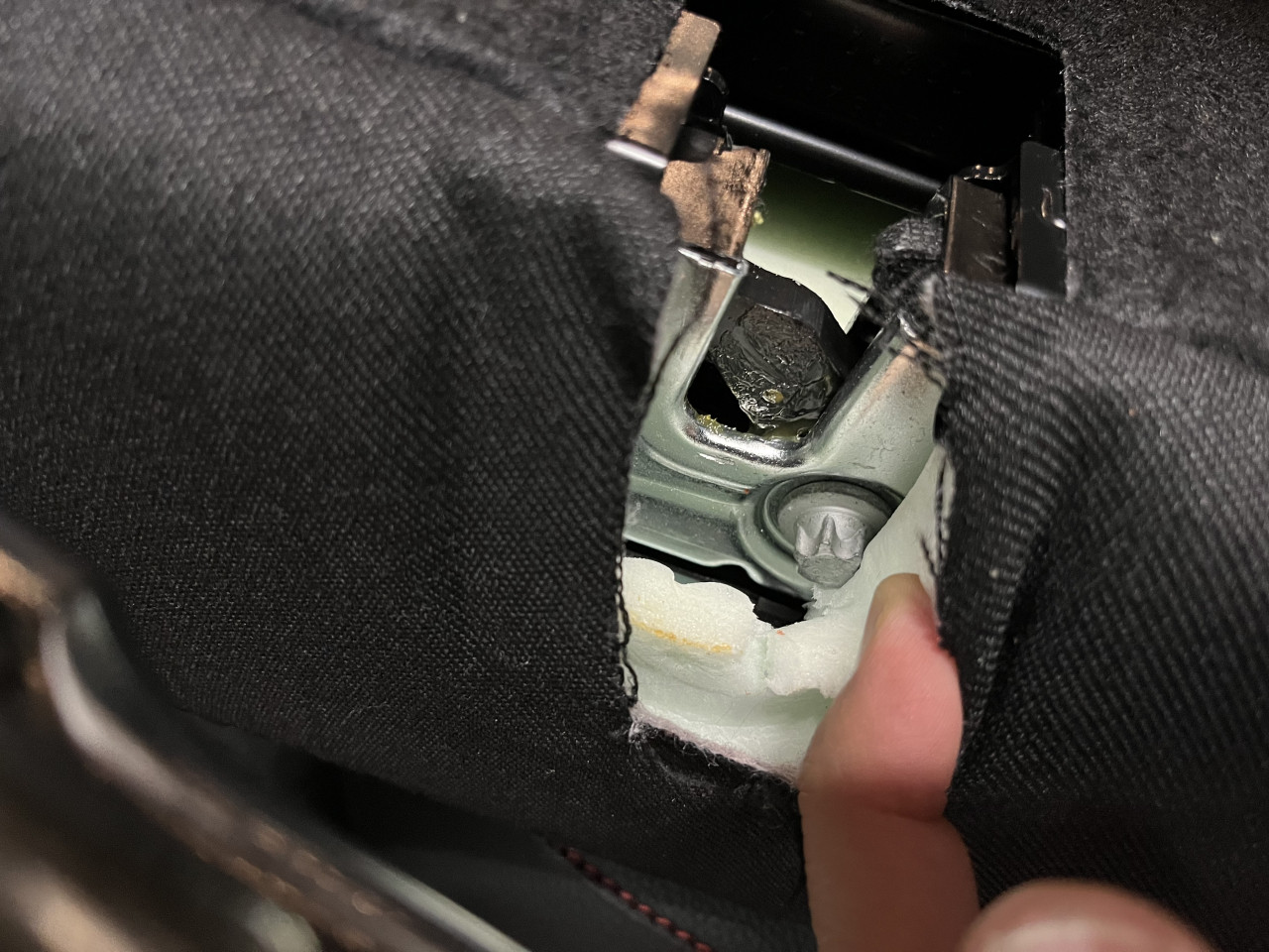 あれ?ということで、もう一度シートを倒して走行すると、やはり異音はしなくなり、シートを固定すると異音が再発します。