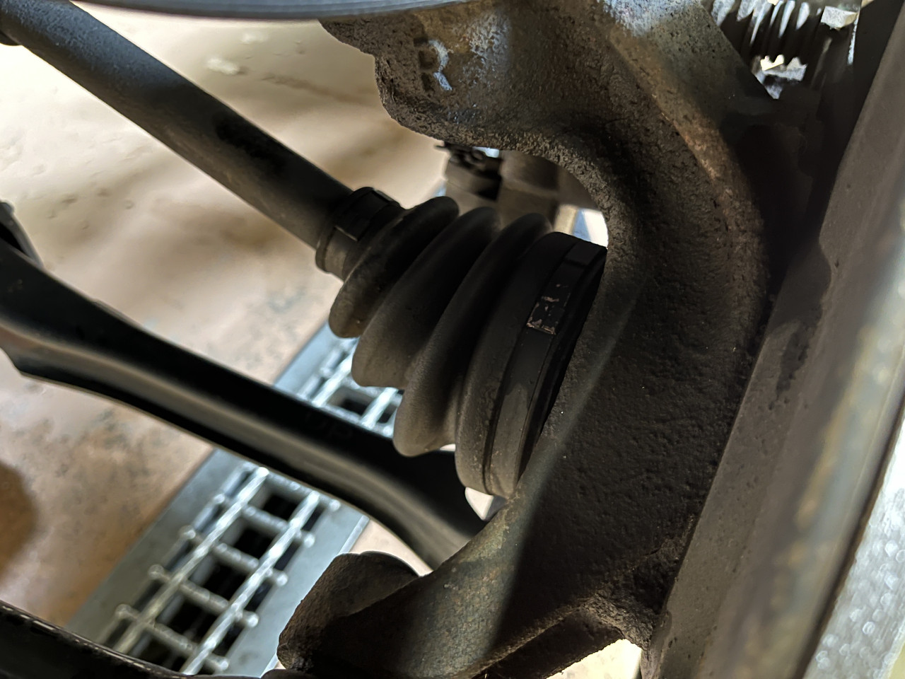 アーム類に続いて、リアで確認できる唯一のゴム部品であるドライブシャフトブーツとインボードブーツの状態を確認致します。