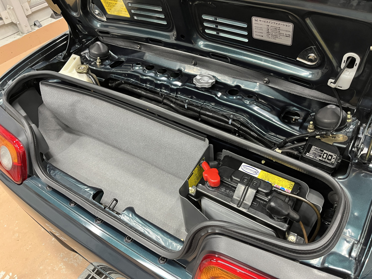 カバーとメンテナンスリッドを取り付けましたら、取り外してあるバッテリーケース、テールライトカバー、トランクマットを清掃を行った上でもとに戻します。