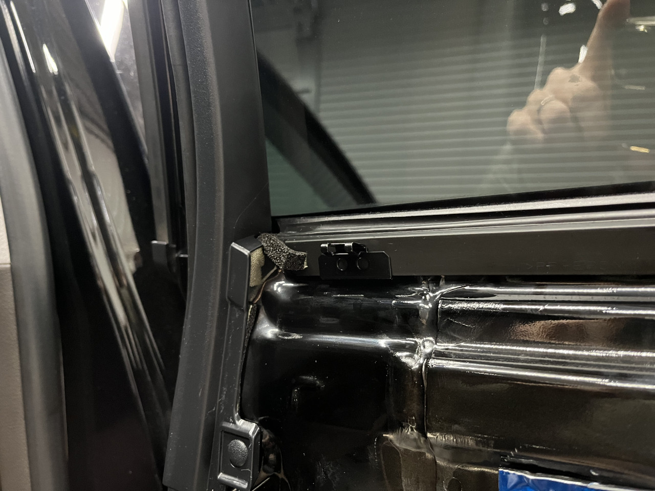 このリアドアにおいては、段差通過時にライニングの上部前側からビビリ音が発生しており、耳に近い部分でもあり不快な音でした。