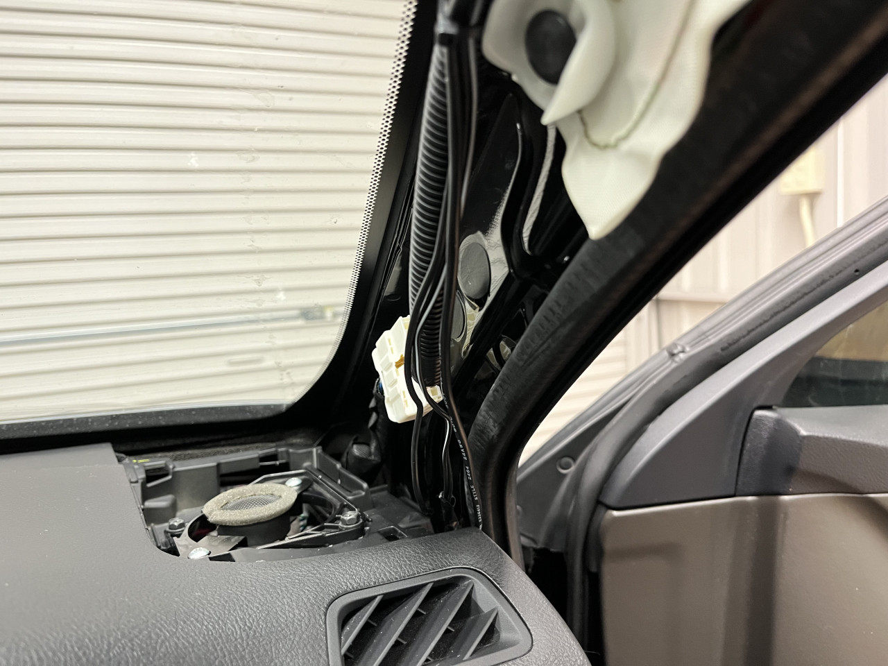 こちら側の異音においては、運転席側と同様にツイーターの配線が原因であると考えられますので、Aピラーとスピーカーカバーを取り外して確認します。