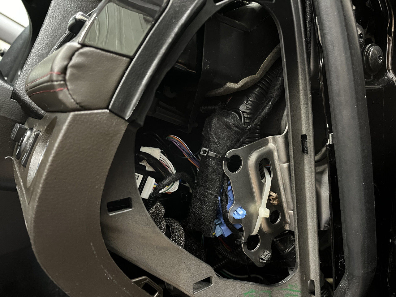 加えて、配線が向かう先であるダッシュボード内も異音の対策はされていないと考えられますので、ダッシュボード横のパネルを取り外して内部を確認します。