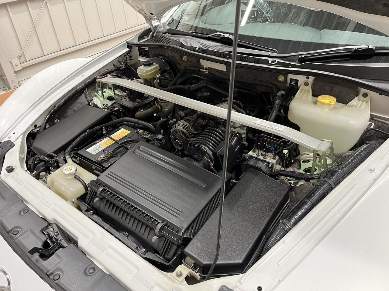 以上で、エンジンルームの状態確認と清掃は完了ですが、前オーナー様がマメにメンテナンスを行っていたこともあり、状態は良好で、問題となる箇所はございませんでした。