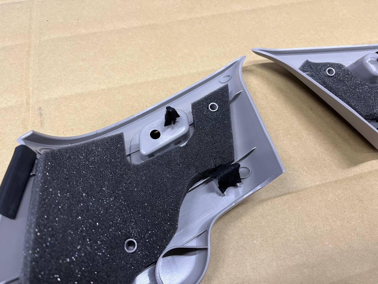 Cピラーライニングは、Dピラーなど他のライニングと同様に取り付けが甘く、段差で異音が発生しており、やはり取り付け状態で手で叩くだけで異音が発生しておりました。