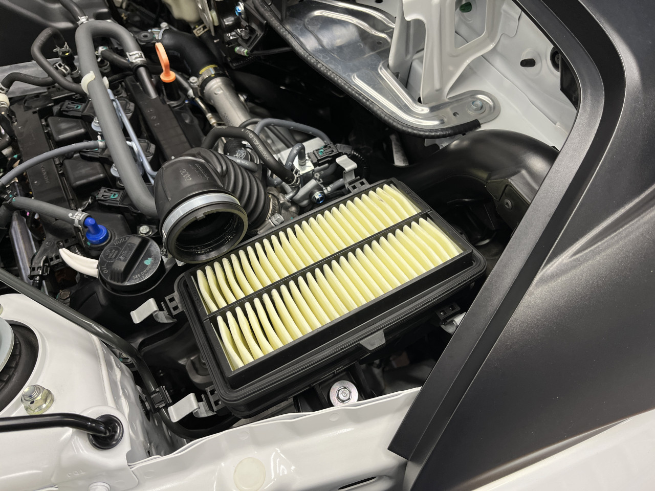 では、早速エンジンルームの状態確認に入りますが、本車両はR4年式で走行距離が13,800kmと少なく、ホンダカーズディーラー様にて欠かさず定期点検を受けている車両ですので、問題となる箇所は無いはずですが、自分の目で確認しないと心配なので、念のため各部の確認を行いました。