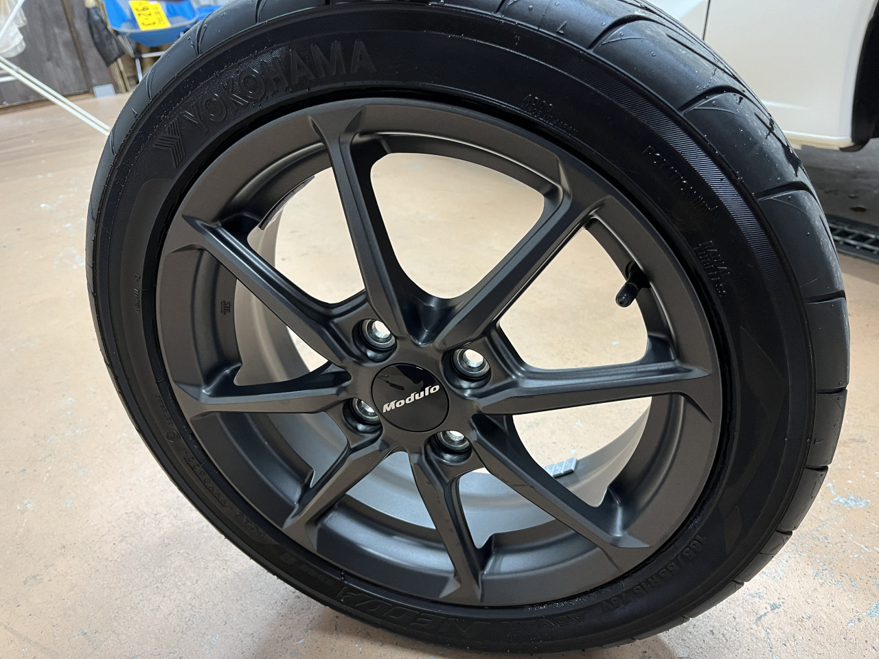 ホイールに関しては、15インチサイズのモデューロホイール(MR-R01)が装着されておりますが、この運転席側フロントホイール1本のみタッチアップ跡がございますものの、タイヤ(ヨコハマ アドバンネオバAD08R)に関しましては残り溝は5.5mmでパンク修理跡もございませんので、このまま安心してお使い頂ける状態です。