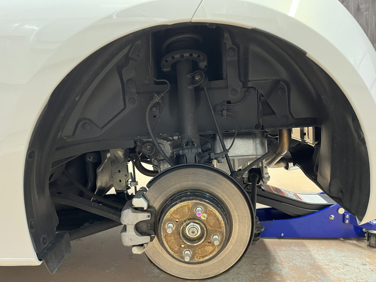 前回はフロント足廻りの状態確認及び清掃の様子をご紹介致しましたが、今回は本車両の最終回【足廻り状態確認②】として、リア側におけるホイールハウス内清掃をはじめ、サスペンションやアーム類の清掃・状態確認及びゴム類やブレーキパッドの残量確認の様子をご紹介致します。