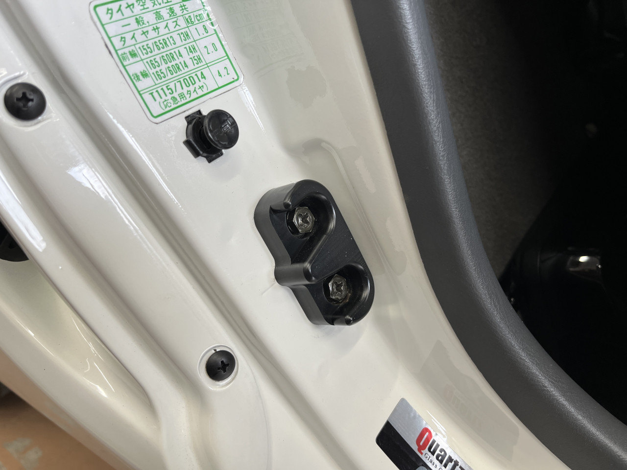 ボディー関連での社外品としては、OPENCAFE GARAGE製のドアウェッジが装着されており、剛性感の向上が図られております。