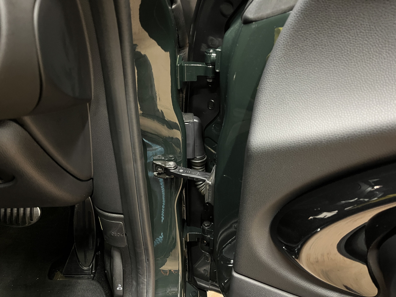 このドアのヒンジ部は綺麗に維持されてきた車両であっても汚れが溜まっていることが多いですので、綿棒などを用いて細かい部分まで綺麗に致します。