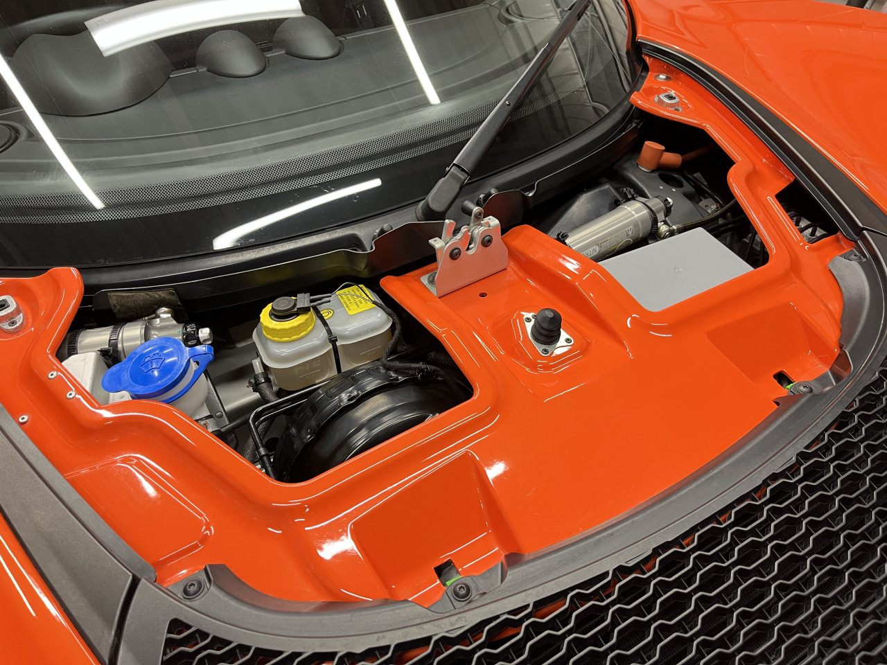 ボンネットフードのヒンジもごついアルミ製で、強度と軽量化の両立に拘っていることが伺えます。