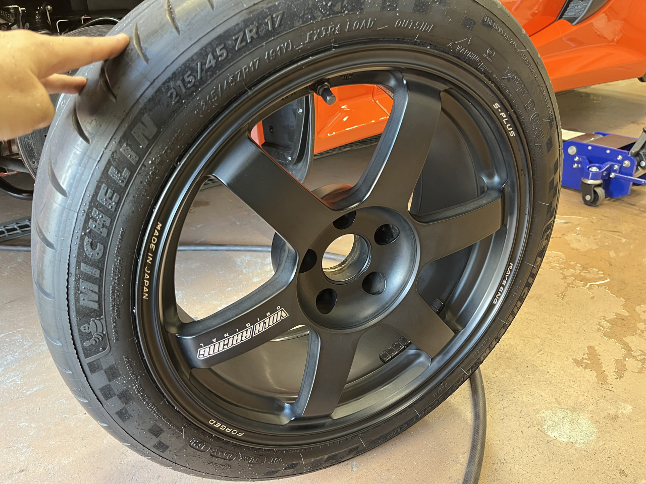 TE37は鍛造モデルのため、軽量且つ高剛性であり、持ち上げるとその軽さに驚きます。
