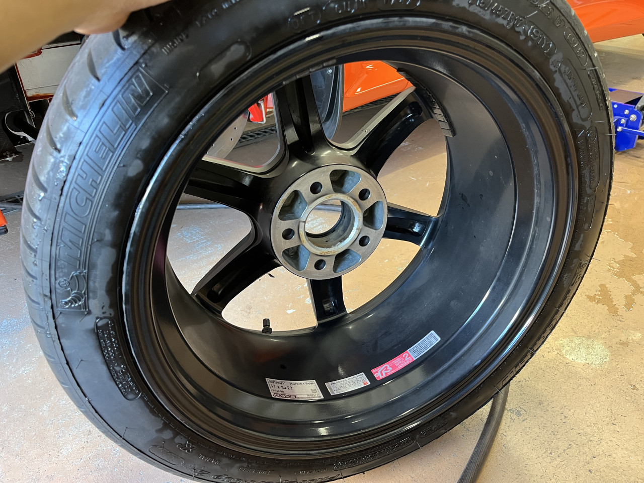 以上で足廻りの確認、清掃が終わりましたので、最後に外したホイールとタイヤ清掃及び状態確認を行います。