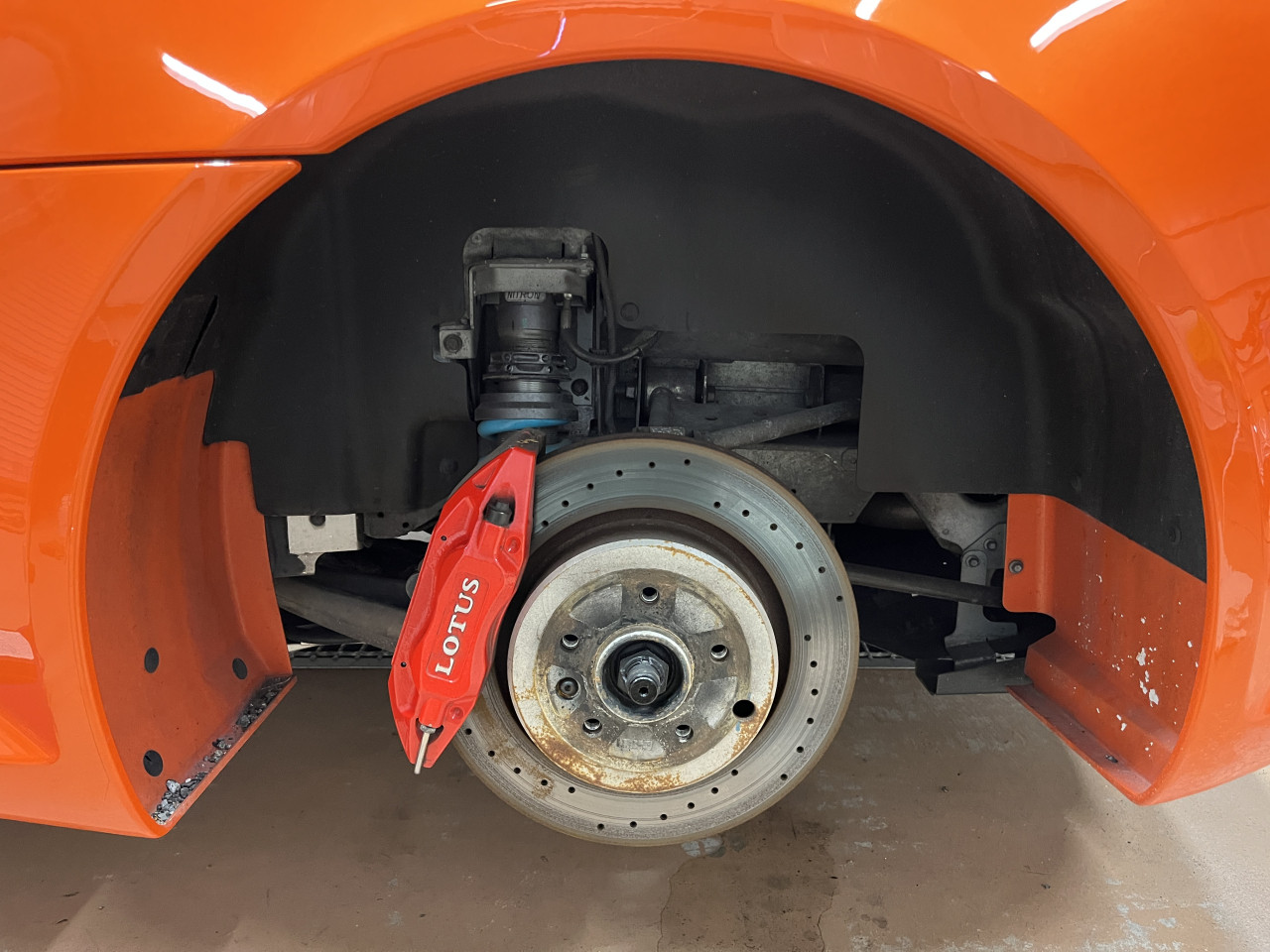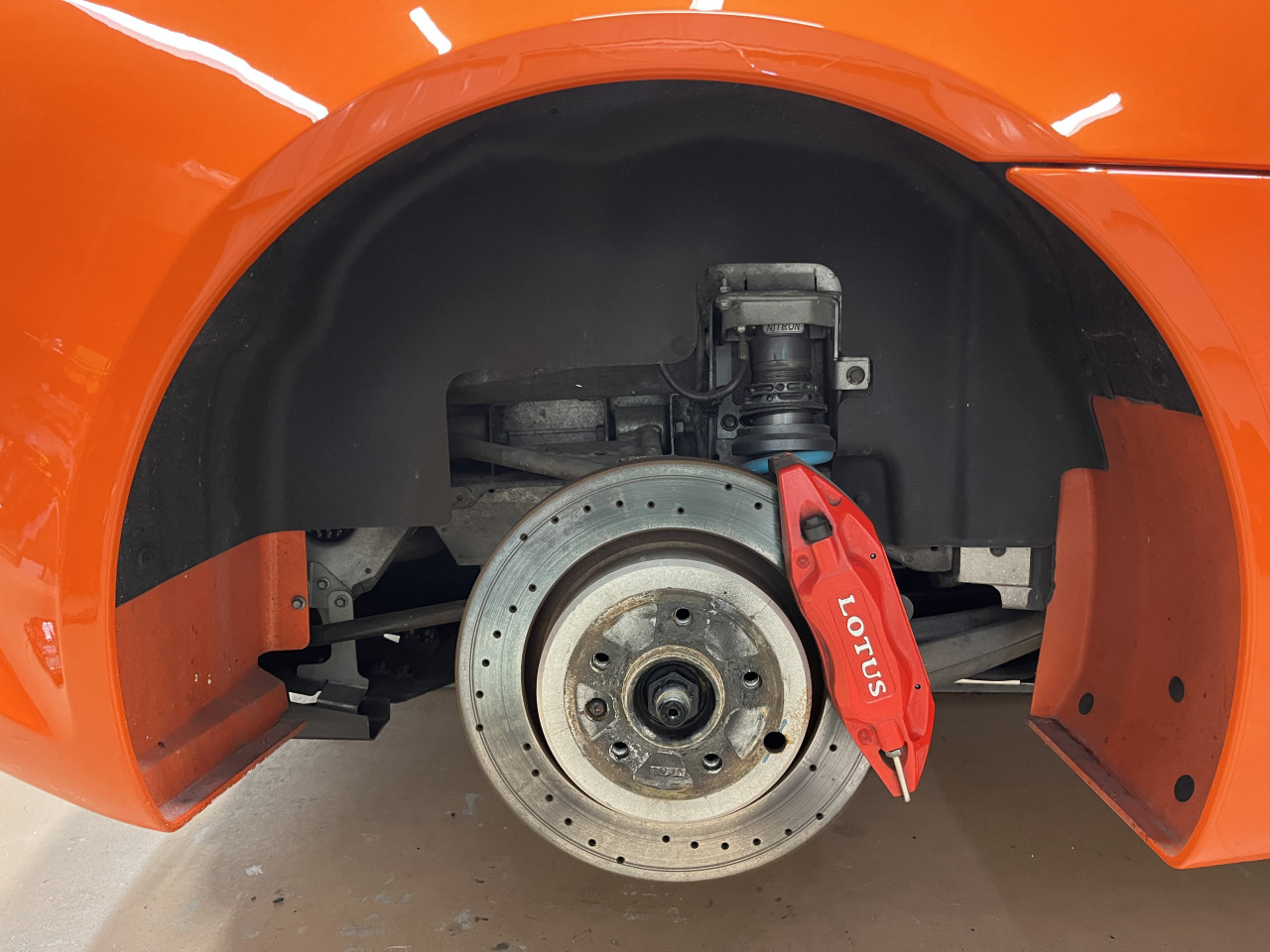 程度極上で希少 SPORT410純正ナイトロンサスペンション・レイズTE37 S-plusなどカスタマイズ多数 LOTUS EXIGE S クラブレーサー 販売前メンテナンス 足廻り清掃・確認編②