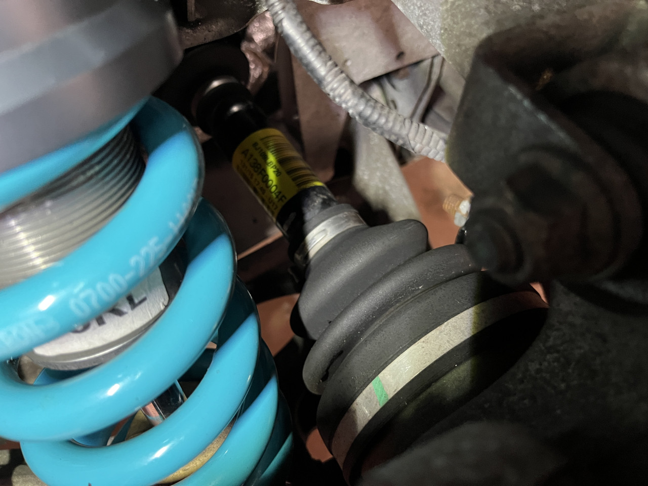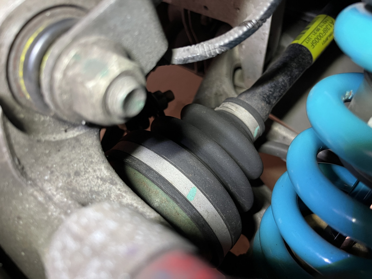 まずは確認から行いますが、サスペンションやアーム類、ゴム類の状態確認を致しましたところ、サスペンションからのオイル漏れやブーツの破れなど、気になる点は一切ございませんでした。