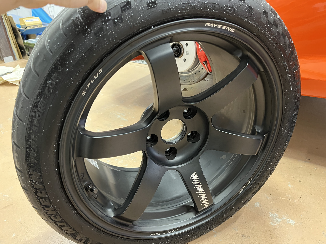 フロントと同様ですが、ホイールはRAYS TE37 SAGA S-PLUSでEXIGE用の特注モデルであり、リアは深いコンケイブがMRらしさを強調しており、本当にカッコ良いです。
