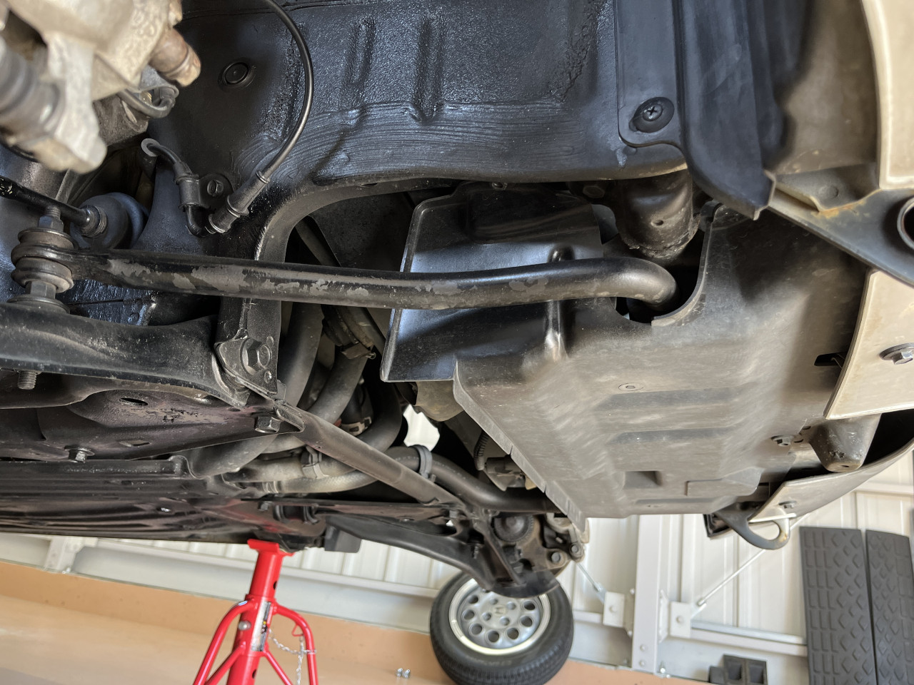 再度、各部ボルト、ナットが規定トルクで締め付けられていることを確認致しましたら、最後にアンダーカバーを車体に取り付ければ、スタビライザーブッシュ及びスタビライザーラバーAの交換作業は完了です。