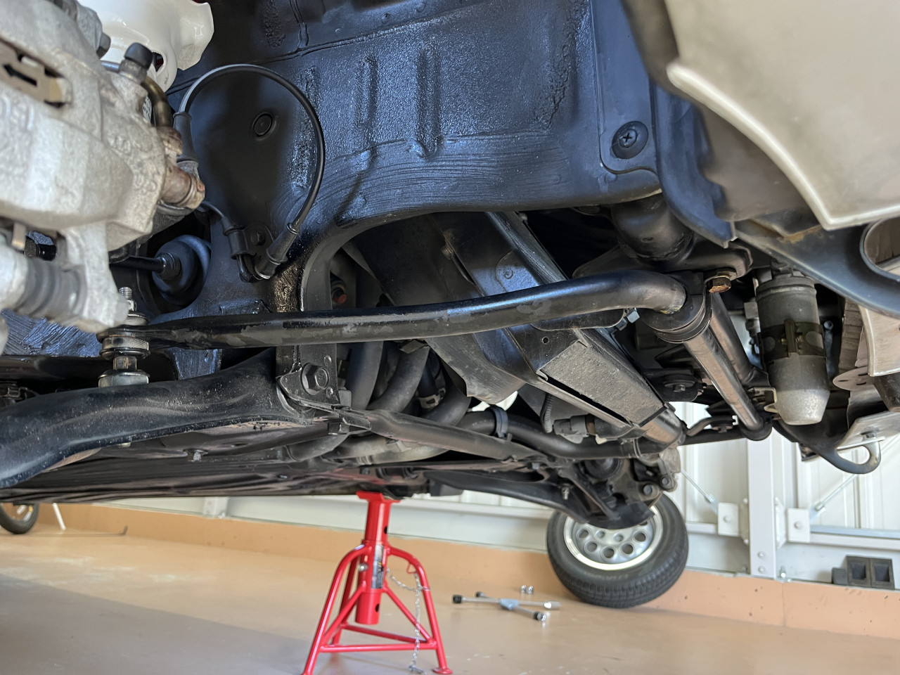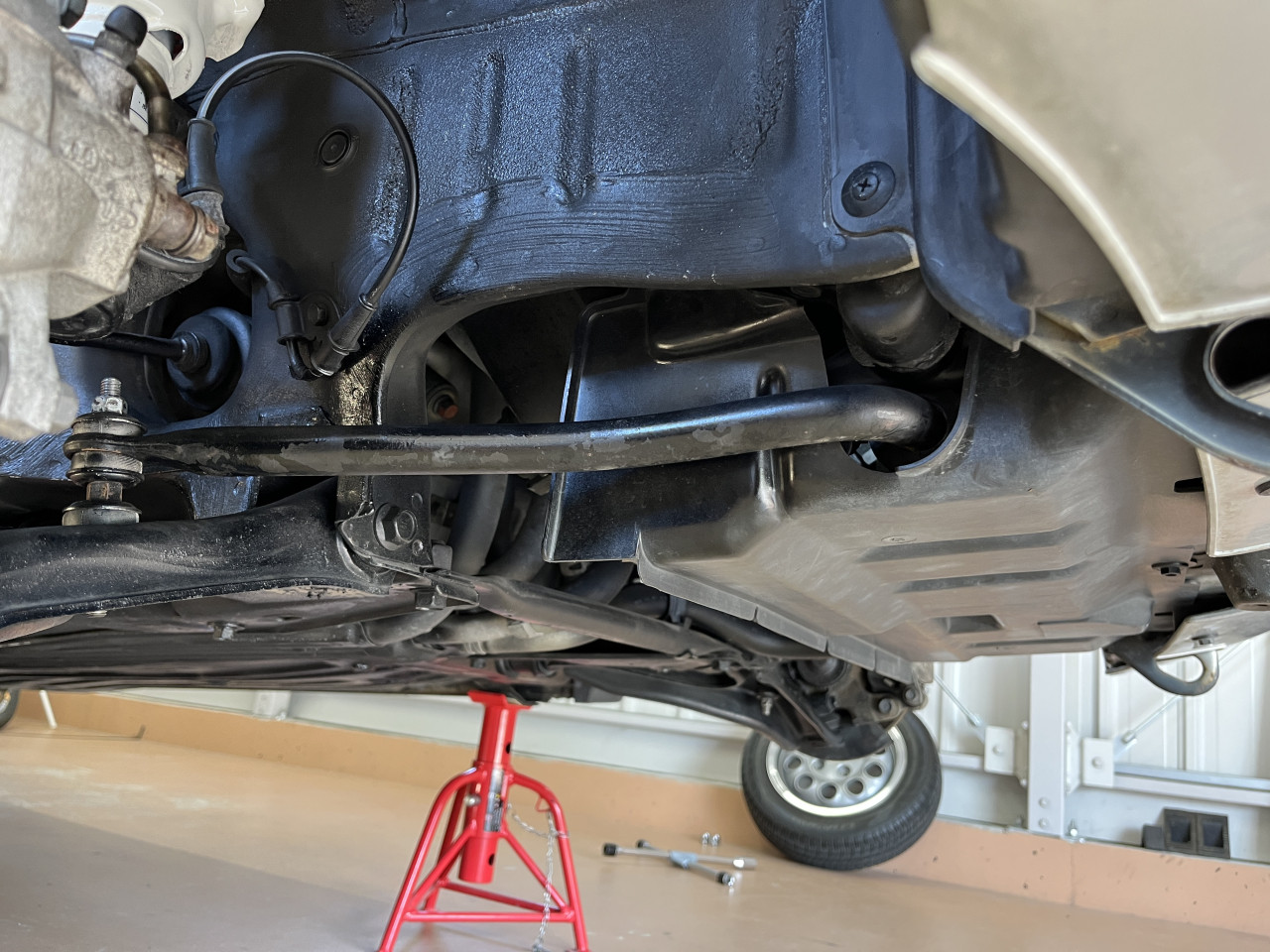 続いては各ブッシュの取り付けに入りますが、取り付け前にスタビライザーやアンダーカバー、そしてアンダーカバーを取り外さないと清掃できない部分を綺麗に清掃しておきます。