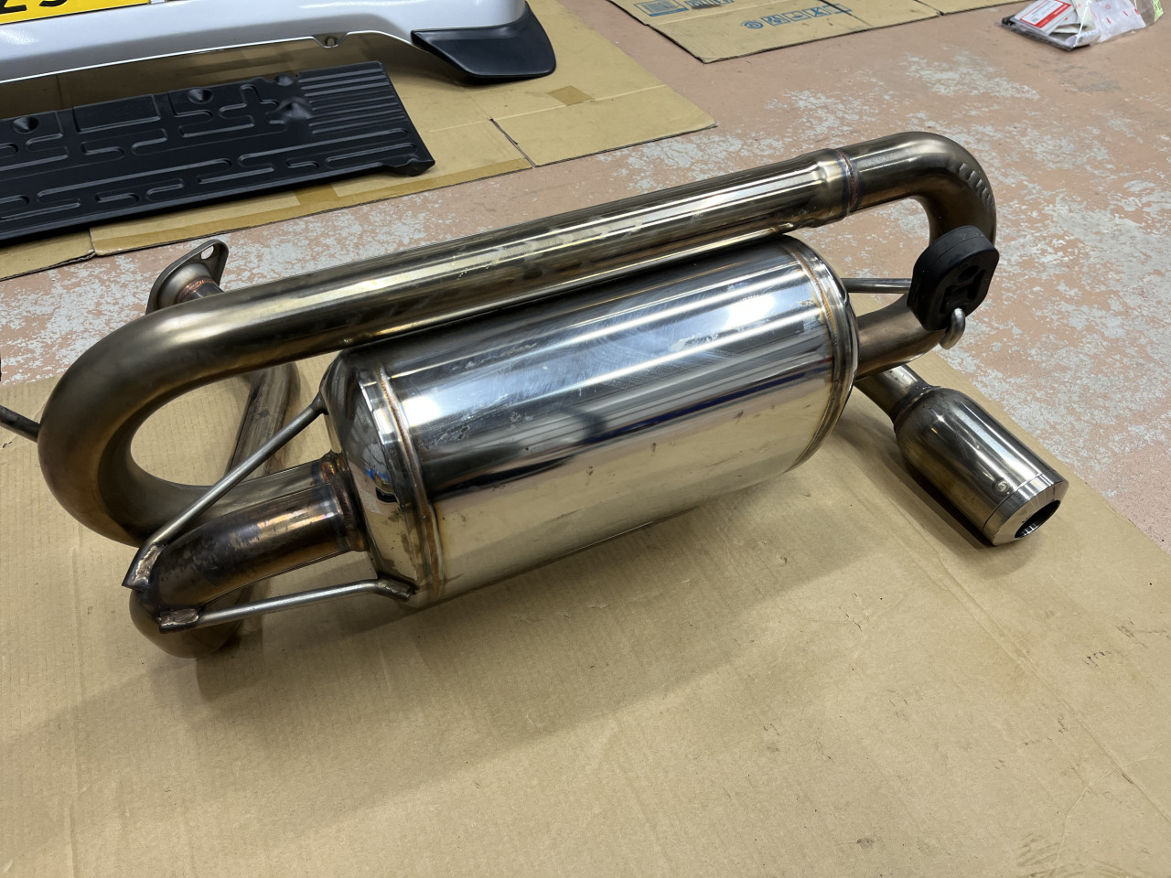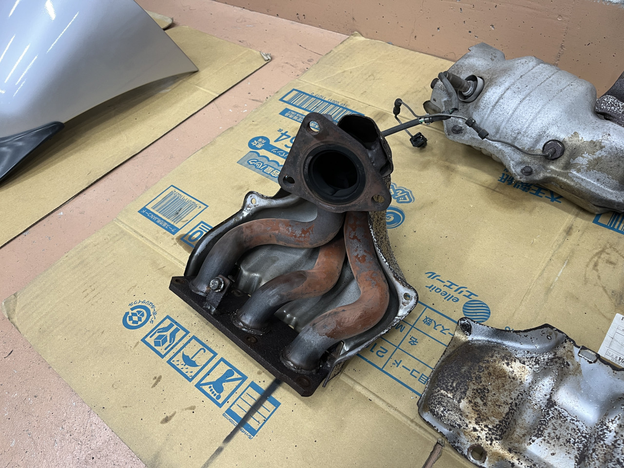 今回交換作業の様子をご紹介致します、無限マフラー(ツインループマフラー)と無限エキゾーストマニホールドですが、共に既に新品は購入できませんので、お客様ご自身が中古品を購入され、お持ち込み頂きました。