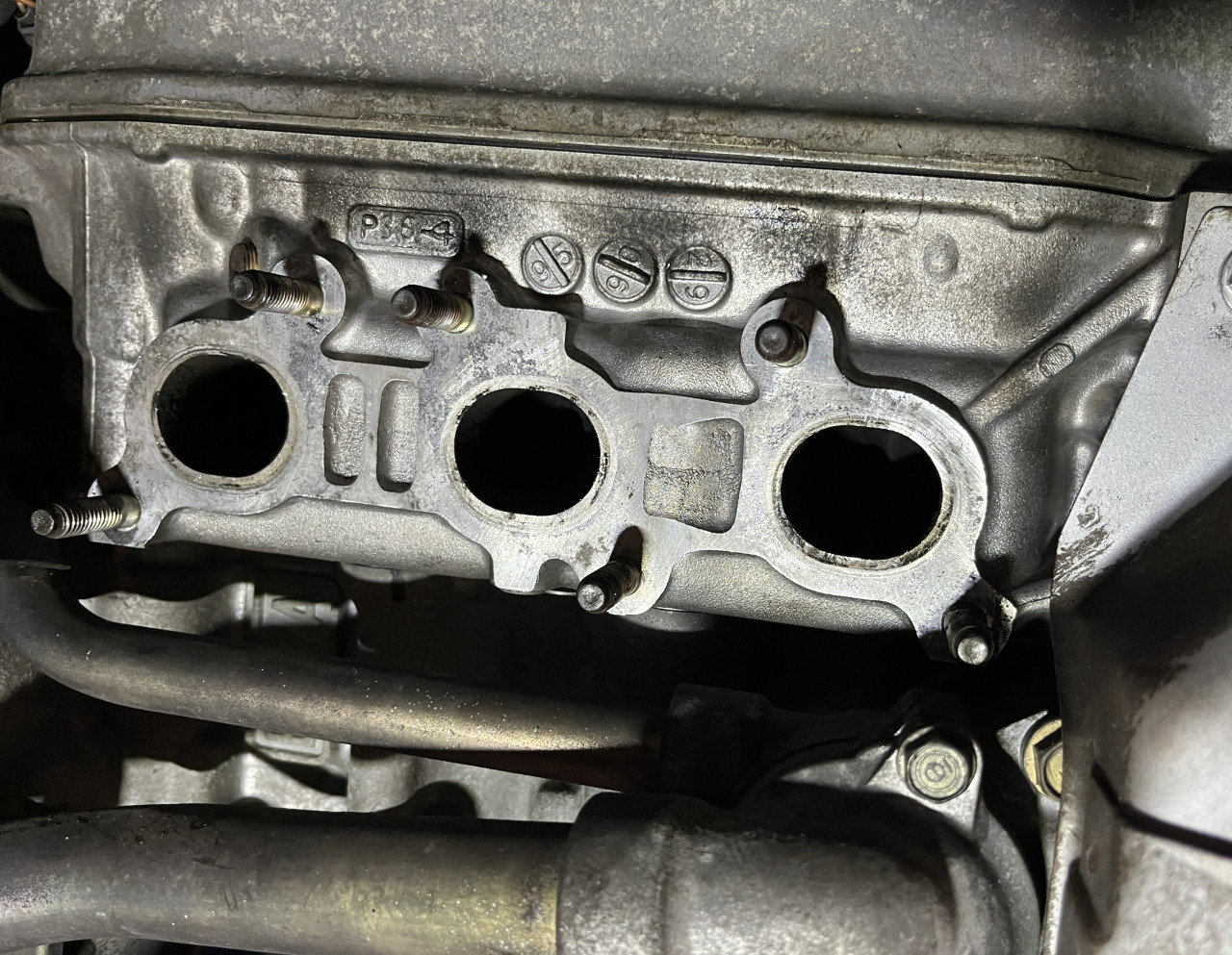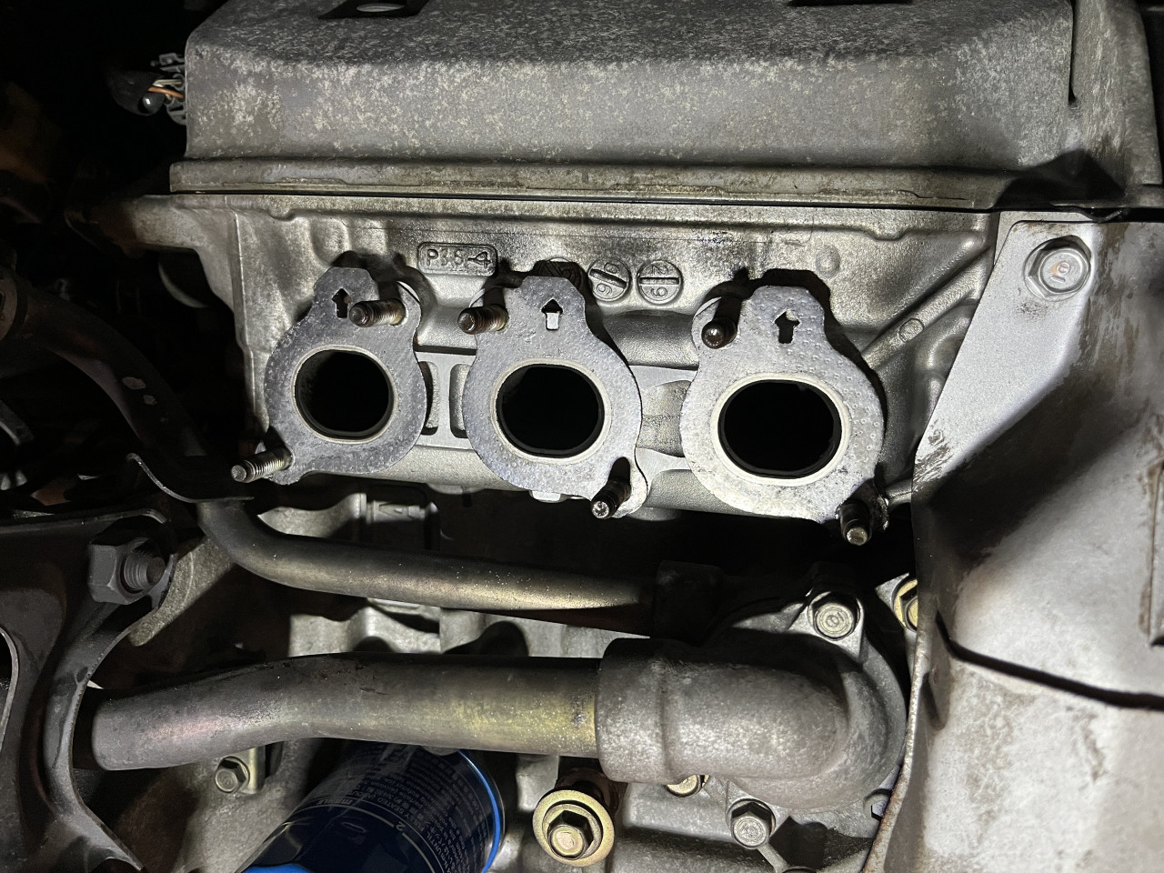 続いては、無限エキマニの取り付ますが、その前にエンジン側に貼りついているガスケットを除去します。