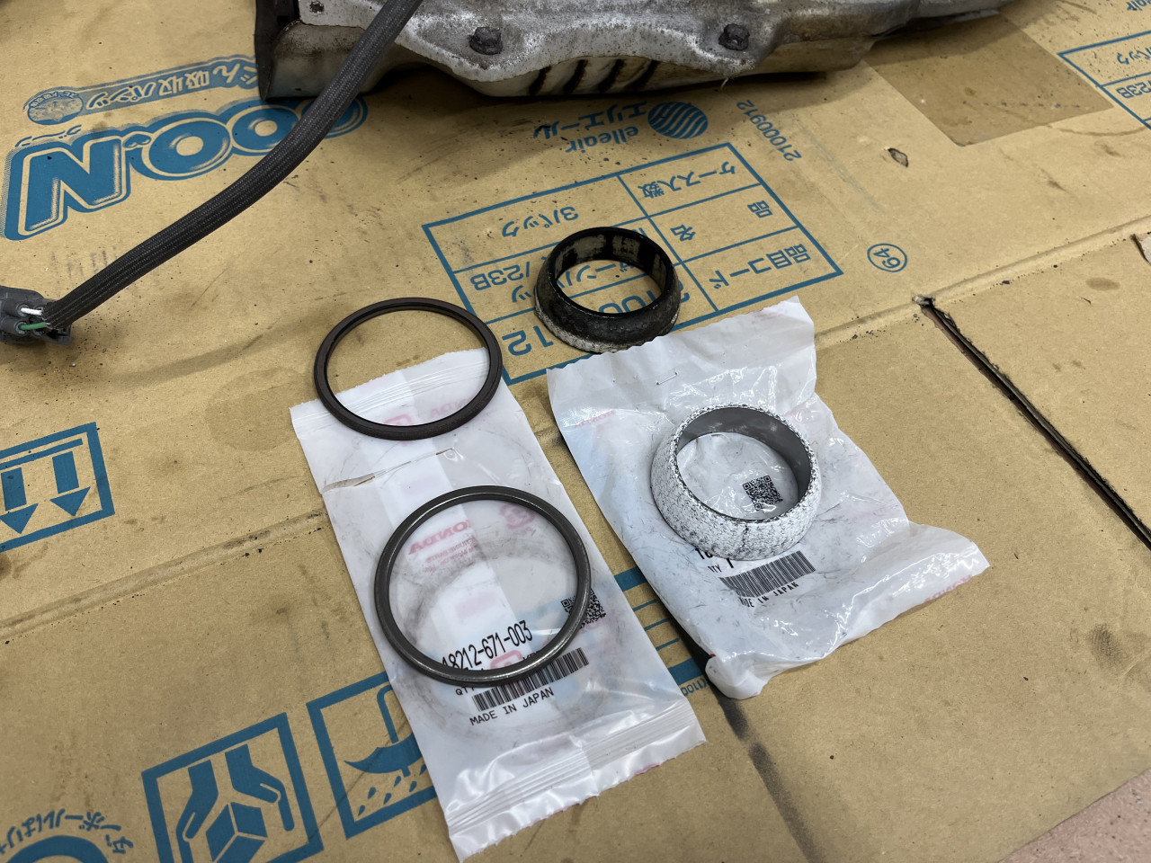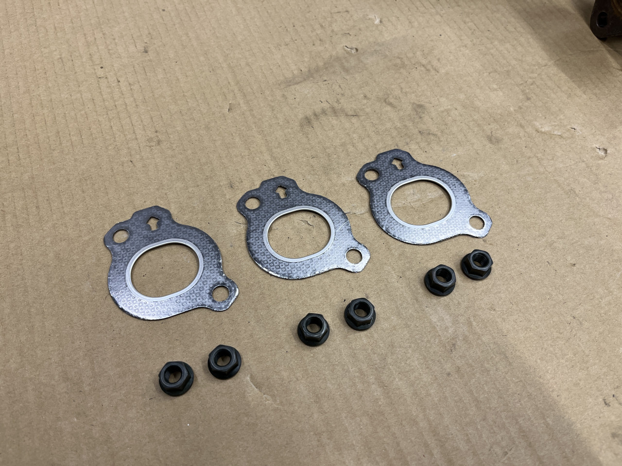 エキマニが固定できましたら、新品のガスケットを取り付けた上で触媒を取り付けます。
