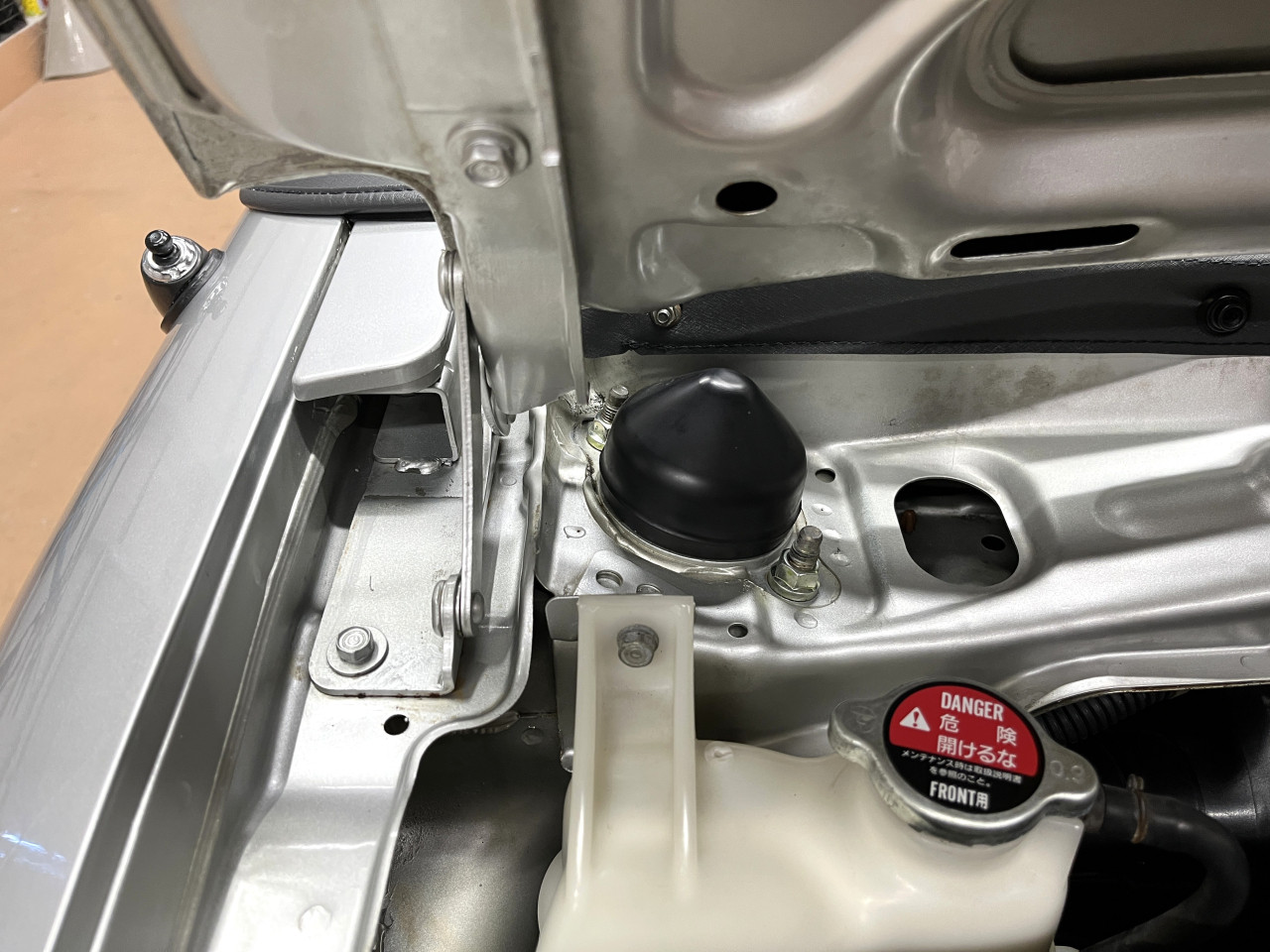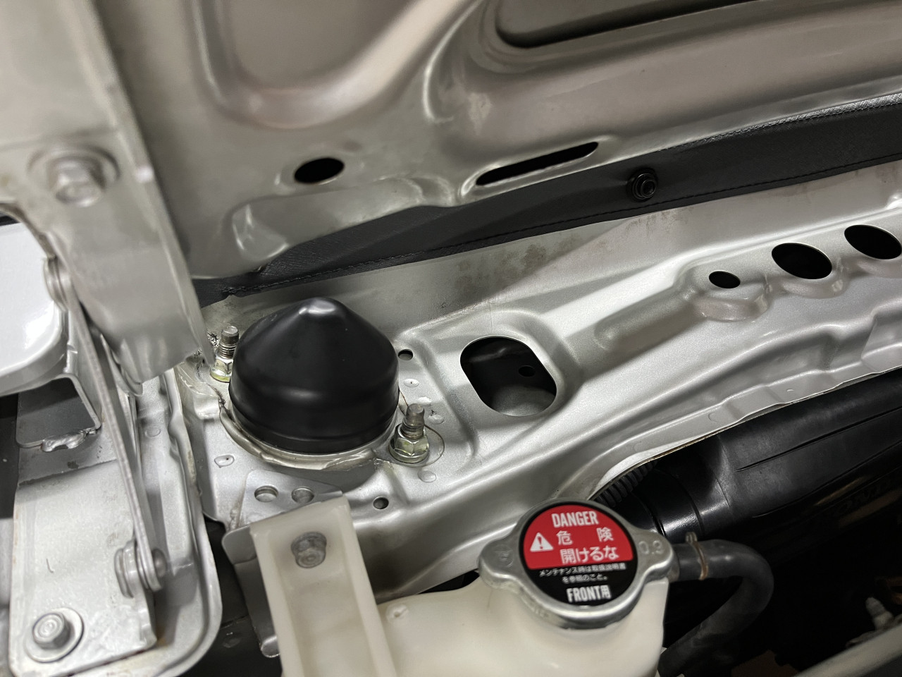 スペアタイヤとスペアタイヤバケットを元に戻せばフロントボンネット内の作業は完了となります。