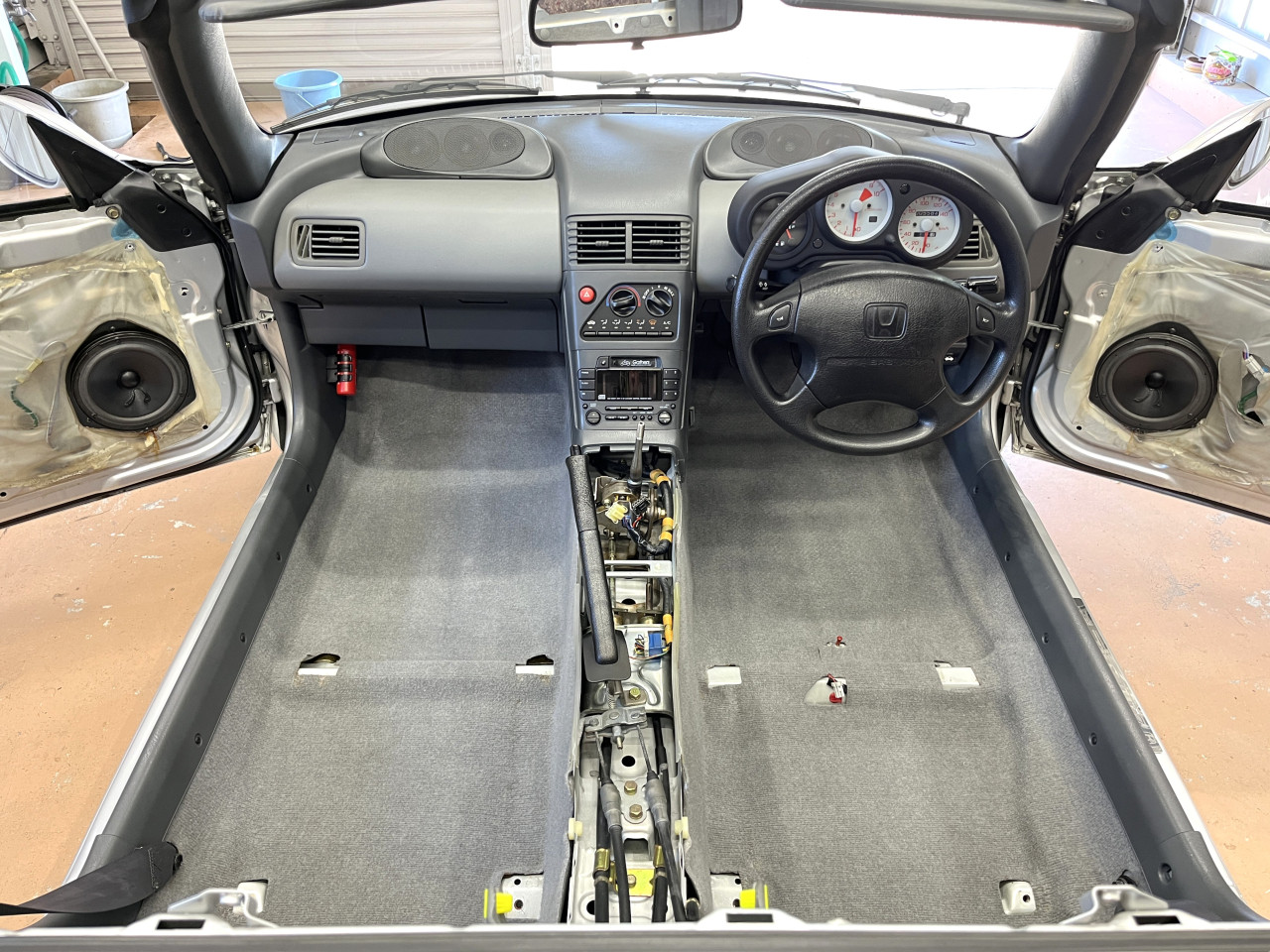 BEATにおきましては製造から既に30年以上経過しておりますので、フロアカーペットやシートなど内装各部に経年の汚れがございますことに加え、どれだけ大切にされてきた車両と言えども通常なかなか清掃ができない部分におきましては汚れが溜まっているものです。