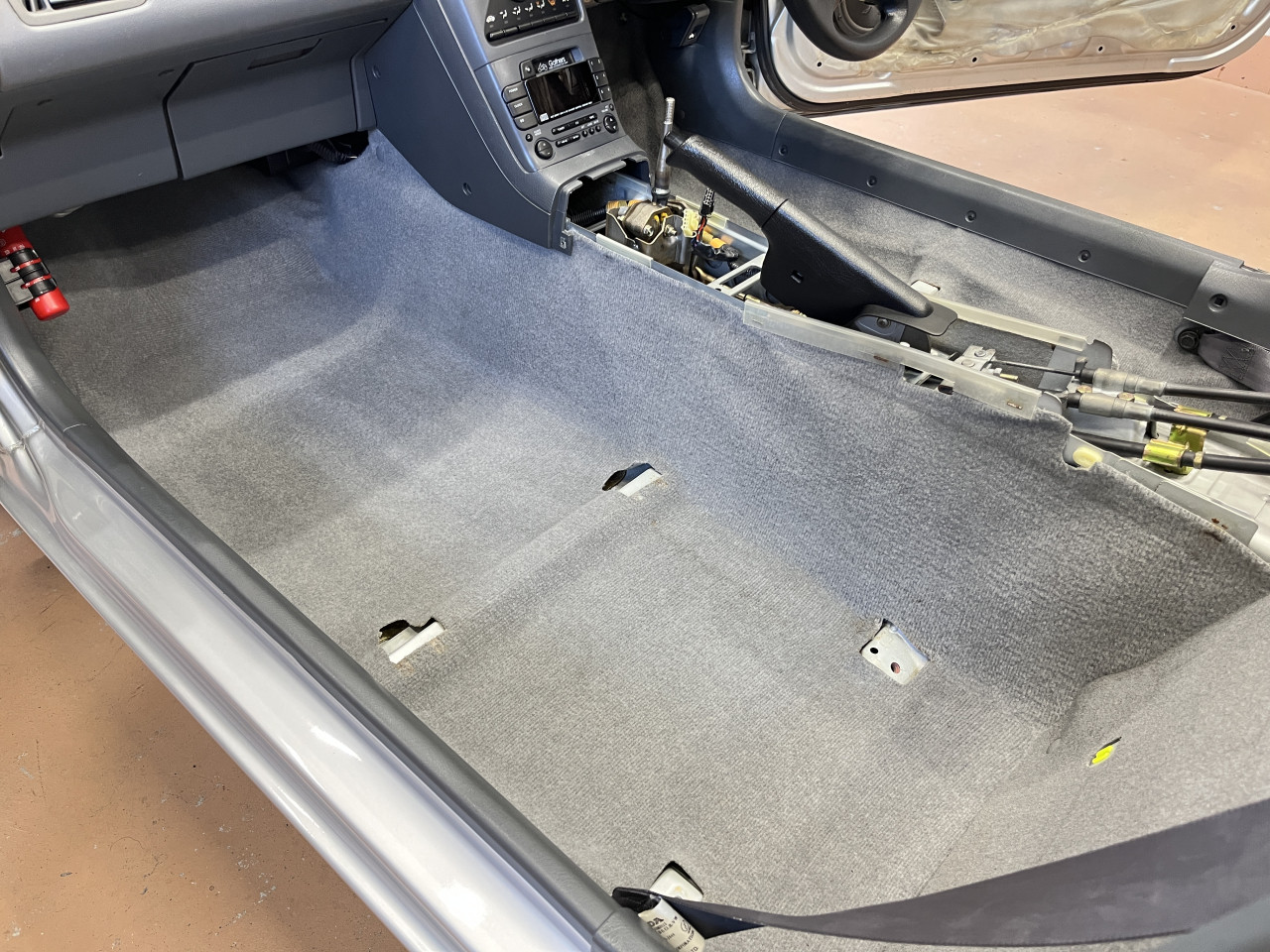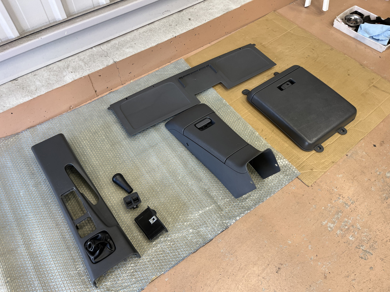 これで、フロアカーペット廻りやセンターコンソールフロア、バルクヘッド廻りの汚れが落ち綺麗さっぱりになりましたので、続いては取り外したセンターコンソールなどの清掃を行います。