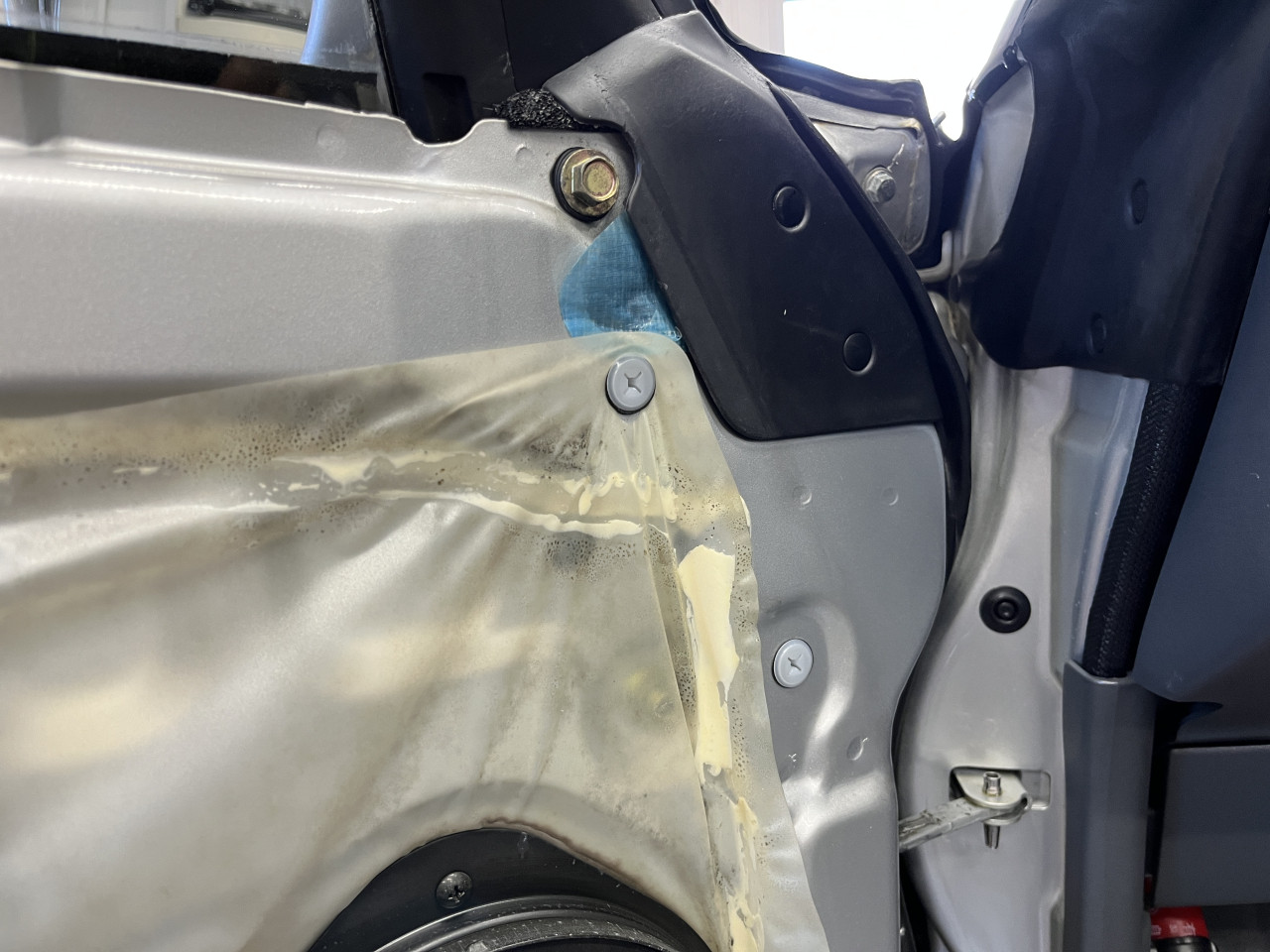 これでドアライニングをビスでしっかり固定することができ、振動等による異音の発生を抑えることができます。