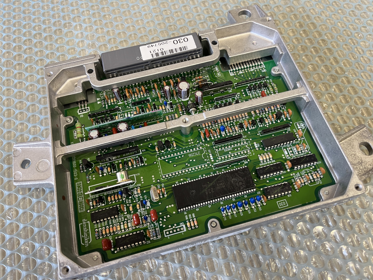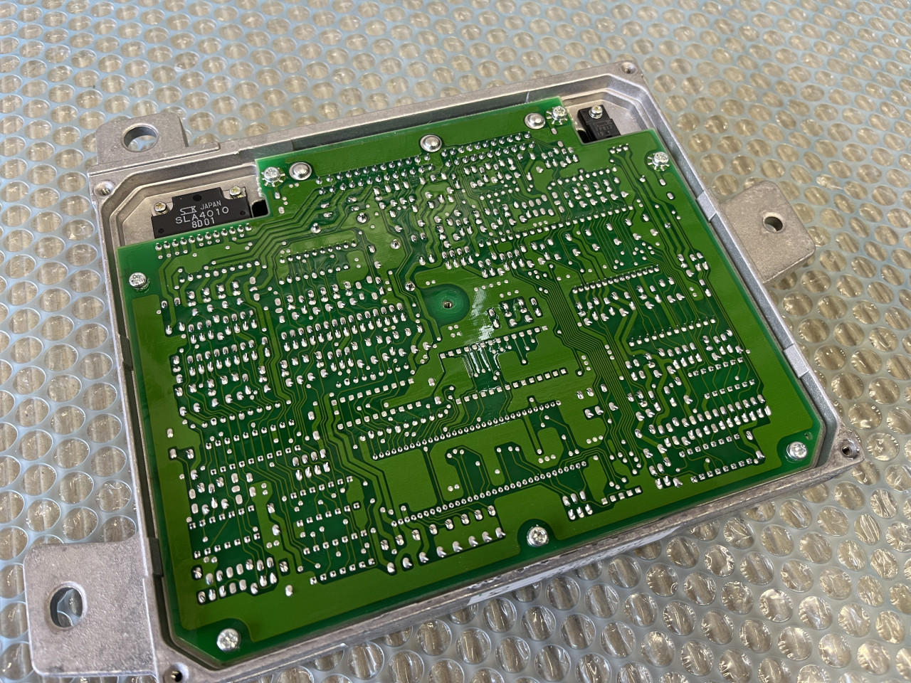 内部確認の前に、本車両のECUは内部の一部コンデンサー等が耐熱仕様となっているいわゆる後期モデルのECUに交換されております。