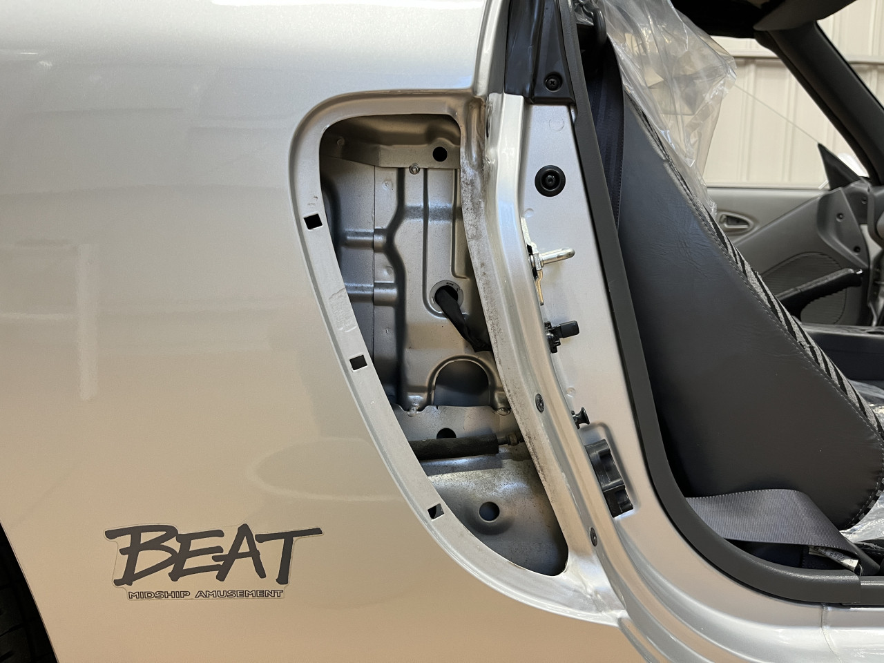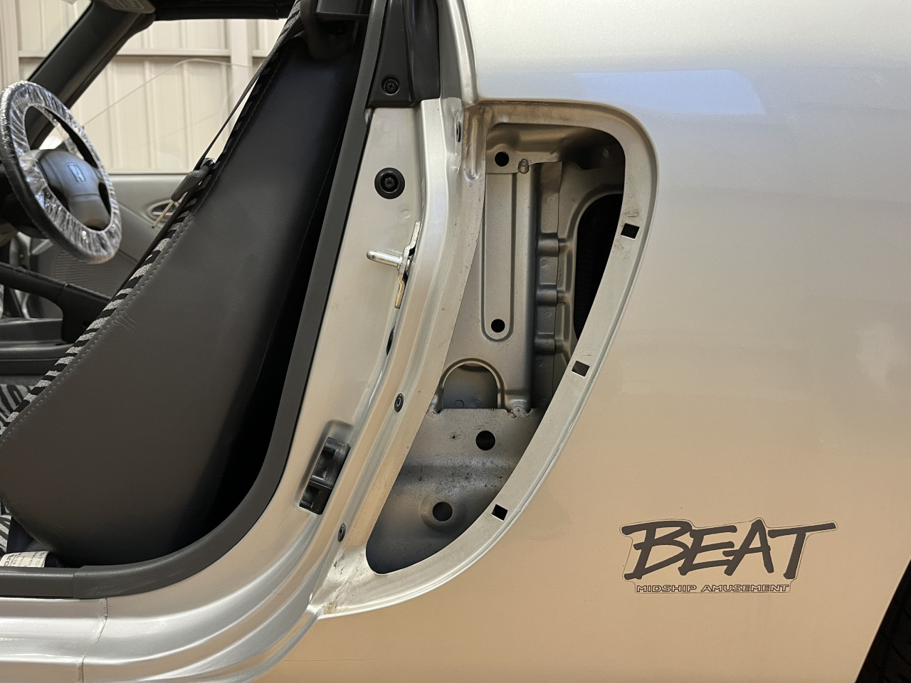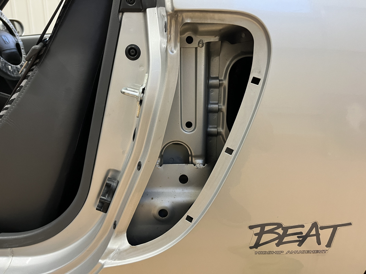 先にご紹介致しましたサイドシル外側からの確認において問題無かったとしても、BEATにおいては『外板を補修により綺麗にしているだけで内側のフレームは錆の腐食により穴が空いてしまっている』という可能性もある為、サイドシル内側の確認も重要です。