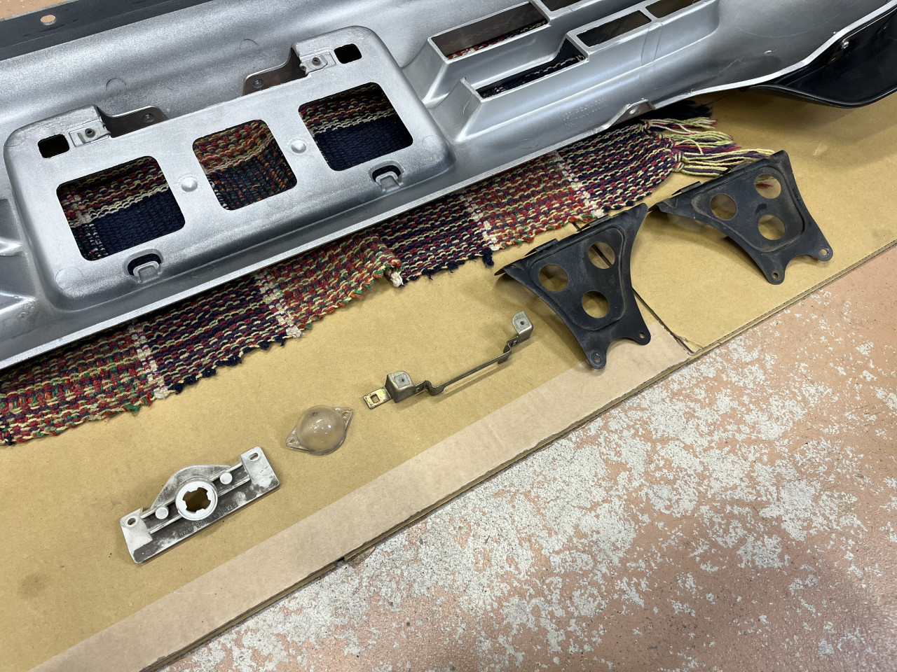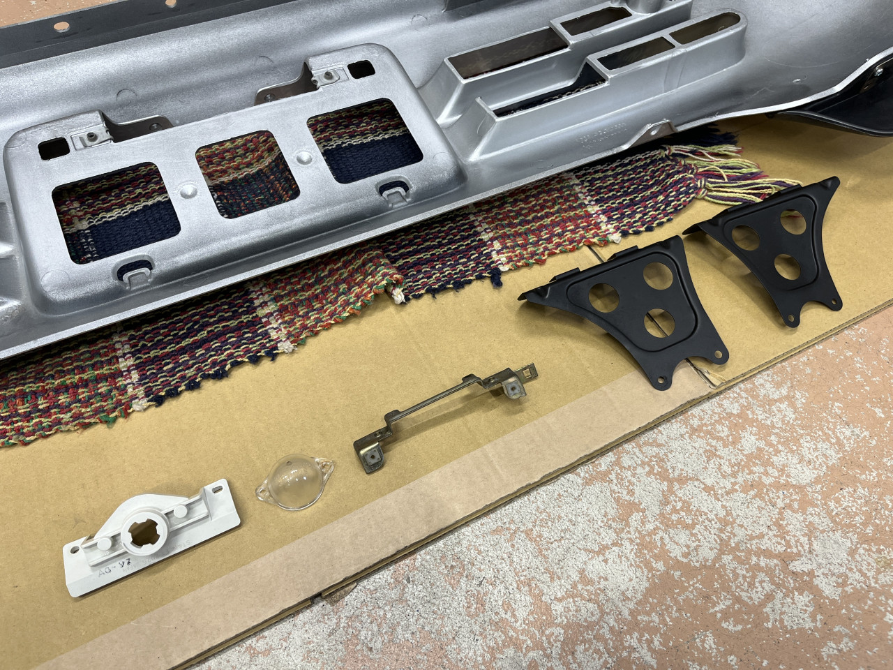 バンパー裏側はもちろんのこと、リアバンパーにはライセンスライトのホルダーやレンズ、ステーなどが装着されておりますので、全て取り外して一つ一つ清掃致します。