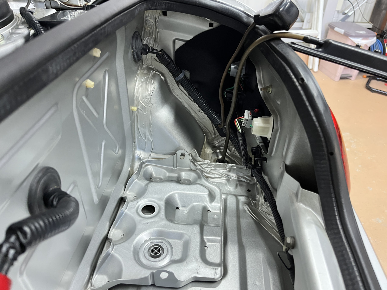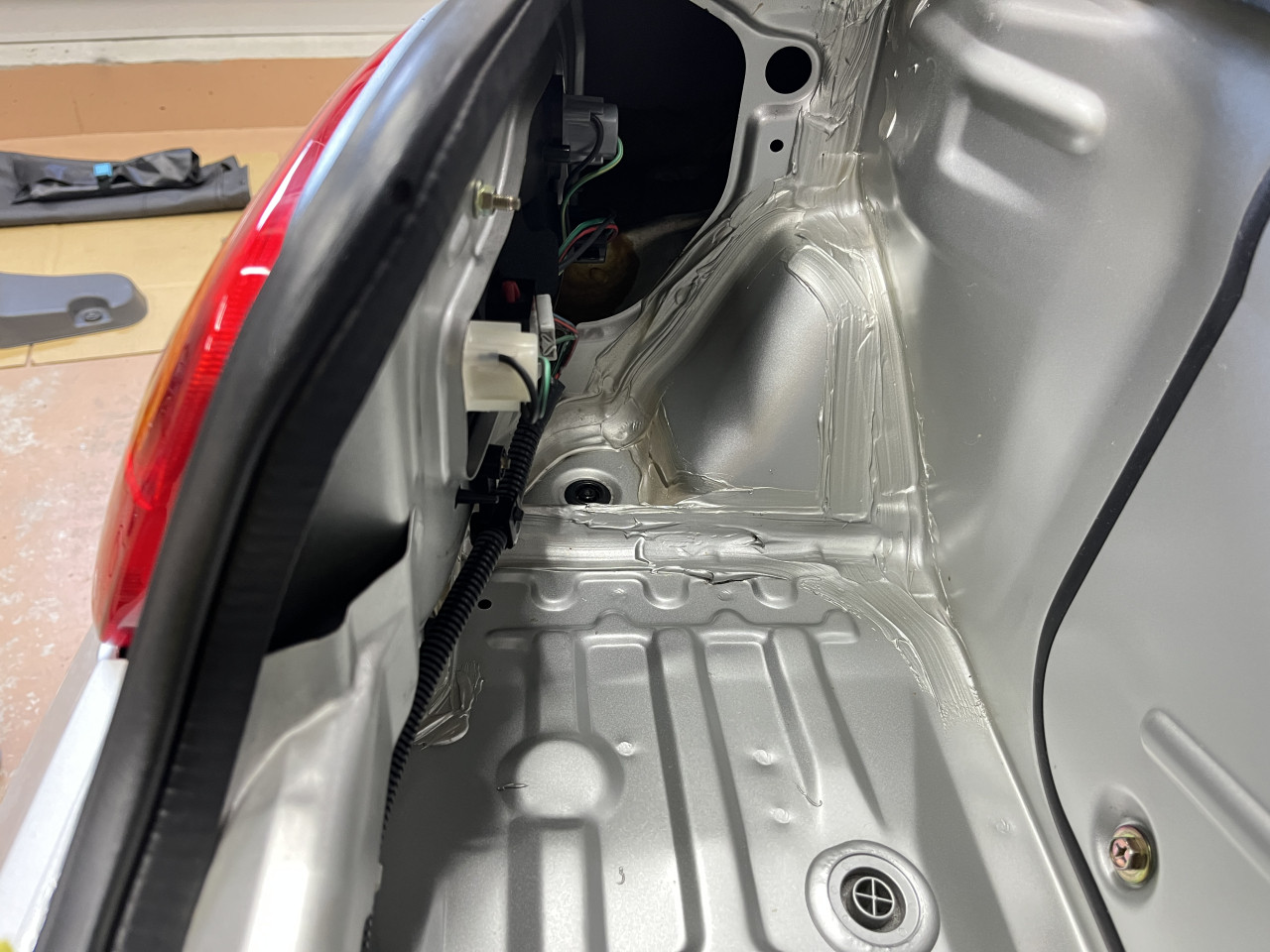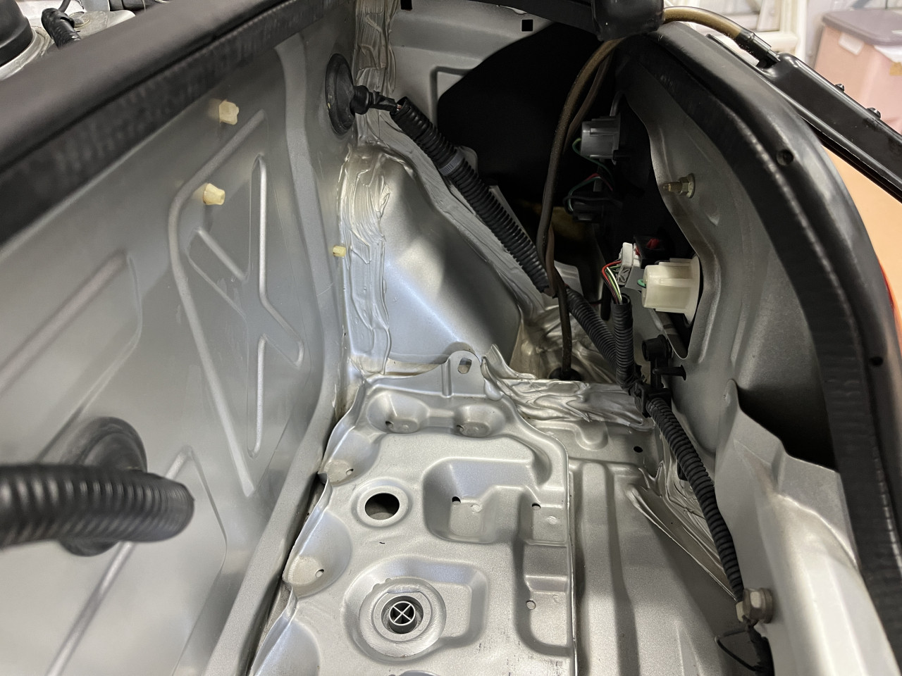 因みに、水に良く濡れてきた車両においては、このメンテナンスリッド固定部分の下側パネルに錆が進んでいる車両もありますが(トランク部分から入った水が溜まりやすいため)、本車両は全く錆が見られません。